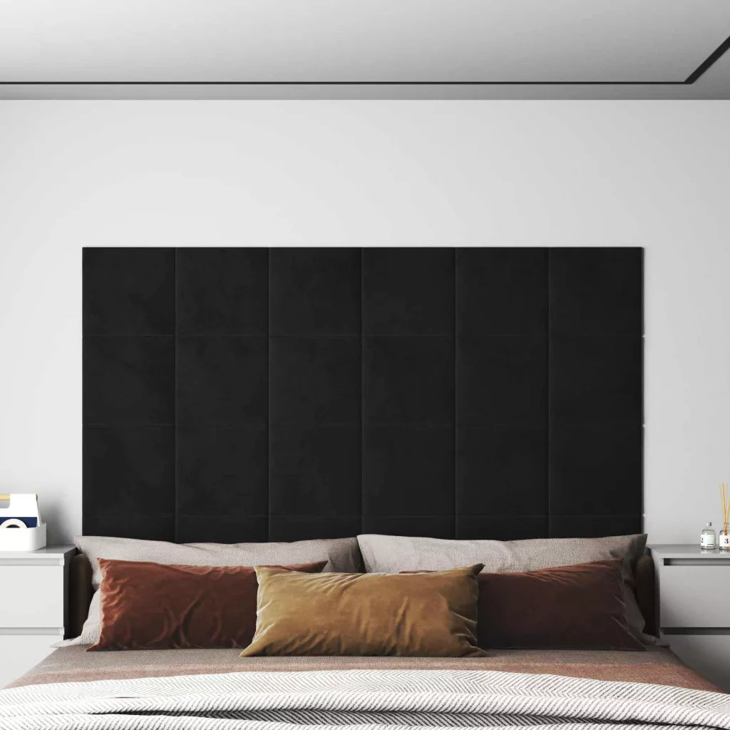 Fali Fejtámla 12 pcs Fekete 30 x 30 cm Bársony