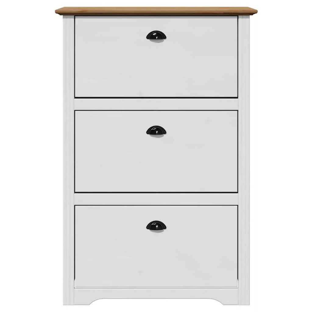 Tartsa cipőit rendben, és teremtsen takaros környezetet ezzel az elegáns cipőtartóval! Tartós anyag: A tömör fenyőfa erősségéről és tartósságáról ismert. Egyenes erezete és jellegzetes csomói hozzájárulnak rusztikus varázsához. A szerelt fa tartós és stabil anyag sima felülettel, amely ellenáll a nedvességnek, a vetemedésnek és a hasadásnak, így megbízható választás különféle célokhoz.Bőséges tárolóhely: A cipőszekrény 3 fiókkal rendelkezik, így bőséges helyet biztosít a cipők tárolására. Ezzel a praktikus cipőtárolóval nem fog többé bosszankodni azon, hogy a lábbelik elfoglalják az egész padlót.Gyakorlati csúcs: A cipőtároló stabil felső polca ideális dekorációs tárgyak, képkeretek elhelyezésére, vagy olyan dolgok tárolására, mint a kulcsok vagy pénztárcák, amelyekre elérhető közelségben lehet szükséged.Könnyen használható: A fiókok fém fogantyúi kényelmessé teszik a nyitást és zárást, és vonzóbbá teszik a cipősszekrényt.Könnyen karbantartható: A cipőszervezőt sima felületének köszönhetően könnyű tisztítani, és csak egy száraz ruhával kell áttörölni. Jó tudni:A falon belüli csavarok és dugók nem alaptartozékok. Azt tanácsoljuk, hogy keressen és használjon kifejezetten az Ön falához megfelelő csavarokat és dugókat. Ha nem biztos benne, konzultálhat egy szakemberrel. Kérjük, olvassa el és kövesse az utasítások minden lépését. Figyelem:A felborulás elkerülése érdekében ezt a terméket a mellékelt fali rögzítőeszközzel kell használni.