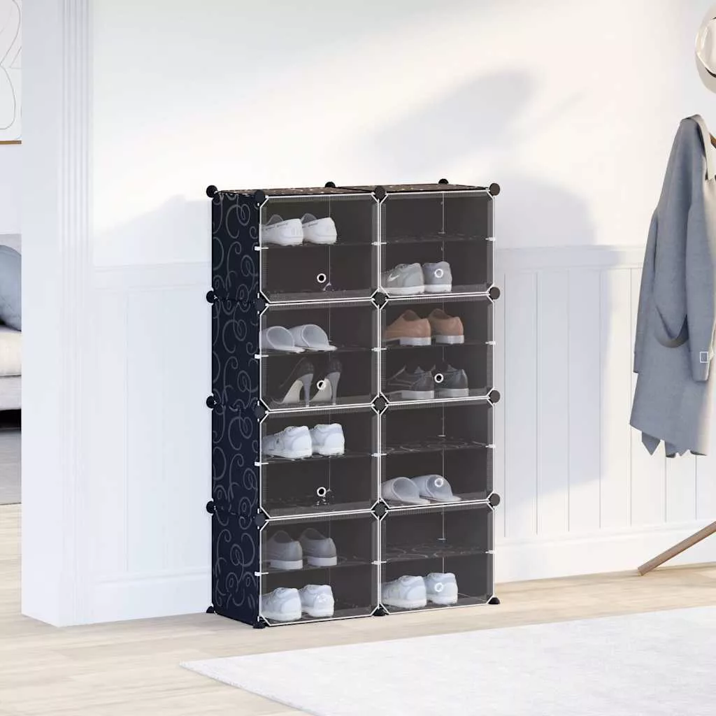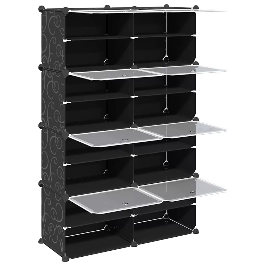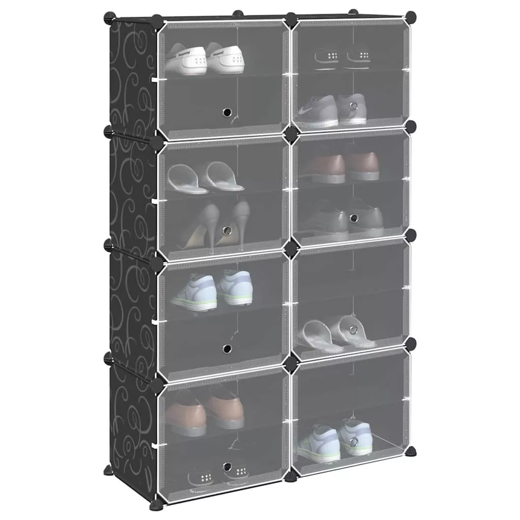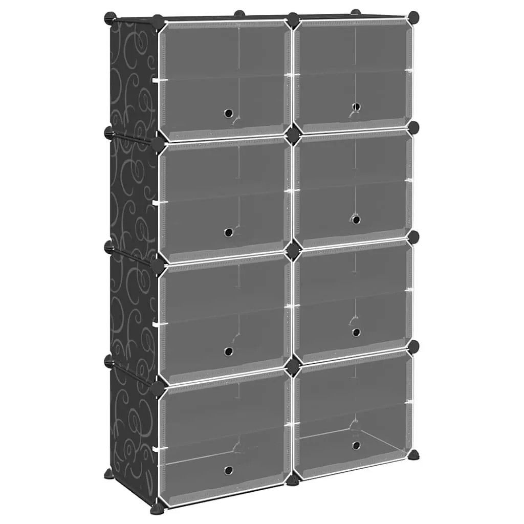 fekete polipropilén tárolókocka 8 db kockával és ajtókkal
