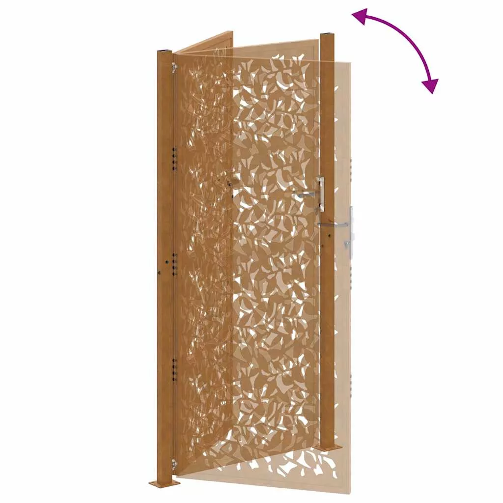 Ez a kertkapu az erős szerkezet és a elegancia tökéletes ötvözete, így ideális bejárat lehet a kertjét vagy teraszát körülvevő kerítéshez. Nagy teherbírású konstrukció: Ez a kerítéskapu időjárásálló acélból készült. Az időjárásálló acél természeténél fogva korróziógátló hatású. Az első légköri hatásnak kitéve rozsdás védőréteget hoz létre a korrózió ellen. Így nem kell festeni. Ezzel megtakaríthatja a karbantartási és javítási költségeket. Az időjárásálló acél jellegzetes barna színe minden bizonnyal szemet gyönyörködtető lesz. Végül, az időjárásálló acél rendkívül tartós, és kiállja az idő próbáját.Lézervágásos dizájn: A biztonsági kapu gyönyörű lézervágással rendelkezik, amely egyedi bájt kölcsönöz otthonának.Zárható kialakítás: A kültéri kapu robusztus zárrendszerrel van felszerelve, amelyhez három megfelelő kulcs tartozik, így garantálva, hogy a teraszkapu biztonságosan zárható.Könnyen összeszerelhető: A bejárati kapu két oszloppal, karimás lapokkal és szerelési tartozékokkal érkezik az egyszerű telepítés érdekében.Széles körű alkalmazások: A fémkapu tökéletesen alkalmas kerti bejáratok, kocsifelhajtók és bármilyen ingatlanhatár javítására, a funkcionalitás és a vizuális vonzerő kombinálásával. Jó tudni:Ez a termék még nem rozsdásodott és normál fémszínű, amikor megkapja, de idővel rozsda fog keletkezni rajta. Felgyorsíthatja a rozsdásodási folyamatot, ha szappanos vízzel és sós vízzel permetezi be. Annak érdekében, hogy ruhái foltmentesek maradjanak, kerülje az érintkezést a kialakuló rozsdaréteggel.