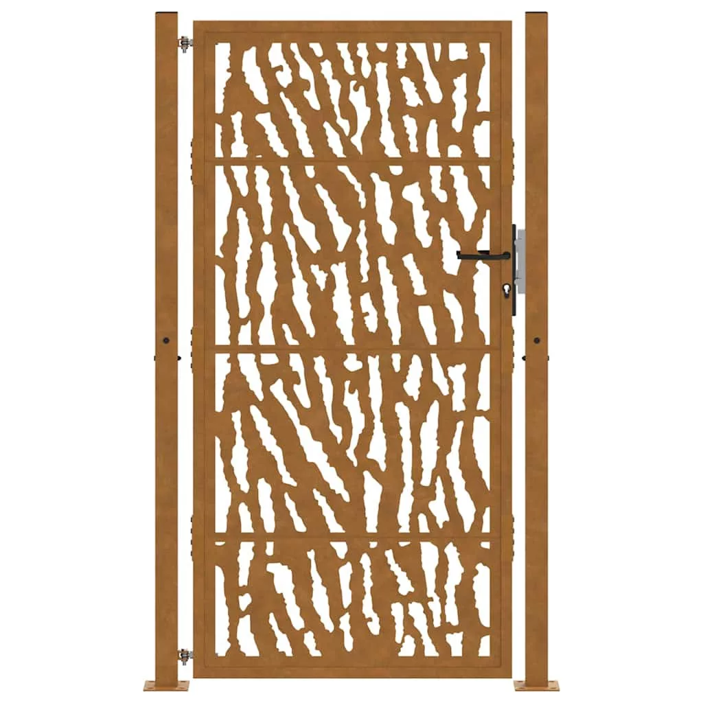 Ez a kertkapu az erős szerkezet és a elegancia tökéletes ötvözete, így ideális bejárat lehet a kertjét vagy teraszát körülvevő kerítéshez. Nagy teherbírású konstrukció: Ez a kerítéskapu időjárásálló acélból készült. Az időjárásálló acél természeténél fogva korróziógátló hatású. Az első légköri hatásnak kitéve rozsdás védőréteget hoz létre a korrózió ellen. Így nem kell festeni. Ezzel megtakaríthatja a karbantartási és javítási költségeket. Az időjárásálló acél jellegzetes barna színe minden bizonnyal szemet gyönyörködtető lesz. Végül, az időjárásálló acél rendkívül tartós, és kiállja az idő próbáját.Lézervágásos dizájn: A biztonsági kapu gyönyörű lézervágással rendelkezik, amely egyedi bájt kölcsönöz otthonának.Zárható kialakítás: A kültéri kapu robusztus zárrendszerrel van felszerelve, amelyhez három megfelelő kulcs tartozik, így garantálva, hogy a teraszkapu biztonságosan zárható.Könnyen összeszerelhető: A bejárati kapu két oszloppal, karimás lapokkal és szerelési tartozékokkal érkezik az egyszerű telepítés érdekében.Széles körű alkalmazások: A fémkapu tökéletesen alkalmas kerti bejáratok, kocsifelhajtók és bármilyen ingatlanhatár javítására, a funkcionalitás és a vizuális vonzerő kombinálásával. Jó tudni:Ez a termék még nem rozsdásodott és normál fémszínű, amikor megkapja, de idővel rozsda fog keletkezni rajta. Felgyorsíthatja a rozsdásodási folyamatot, ha szappanos vízzel és sós vízzel permetezi be. Annak érdekében, hogy ruhái foltmentesek maradjanak, kerülje az érintkezést a kialakuló rozsdaréteggel.
