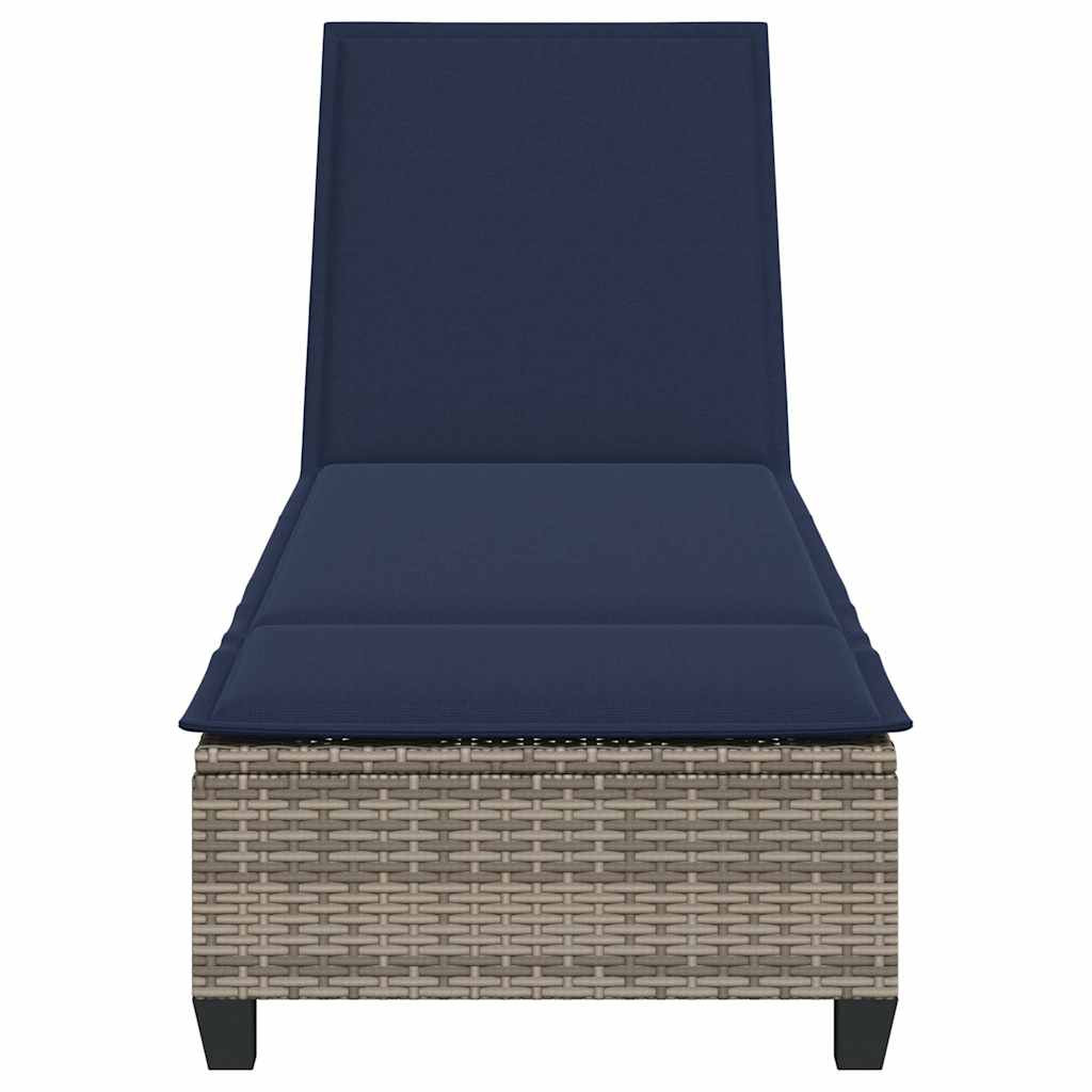 szürke polyrattan napozóágy párnákkal 55x200x25,5 cm