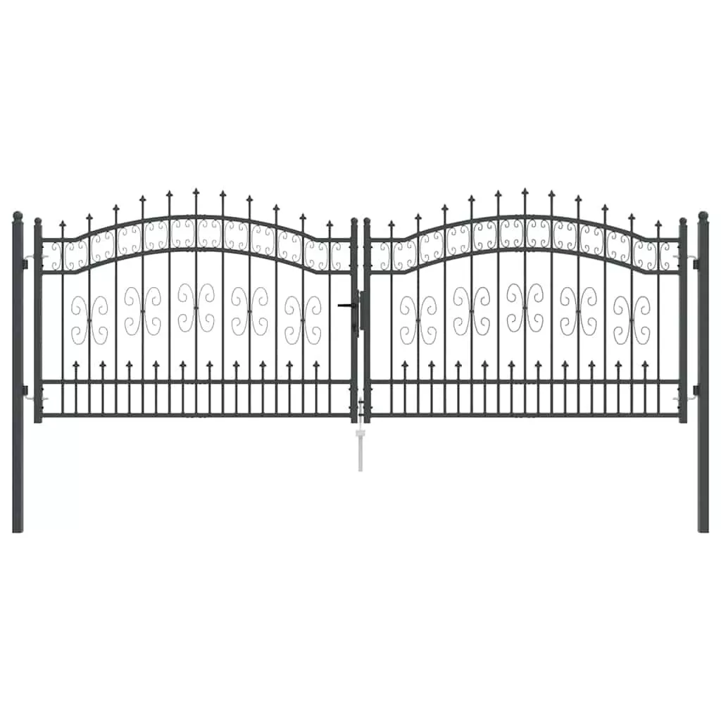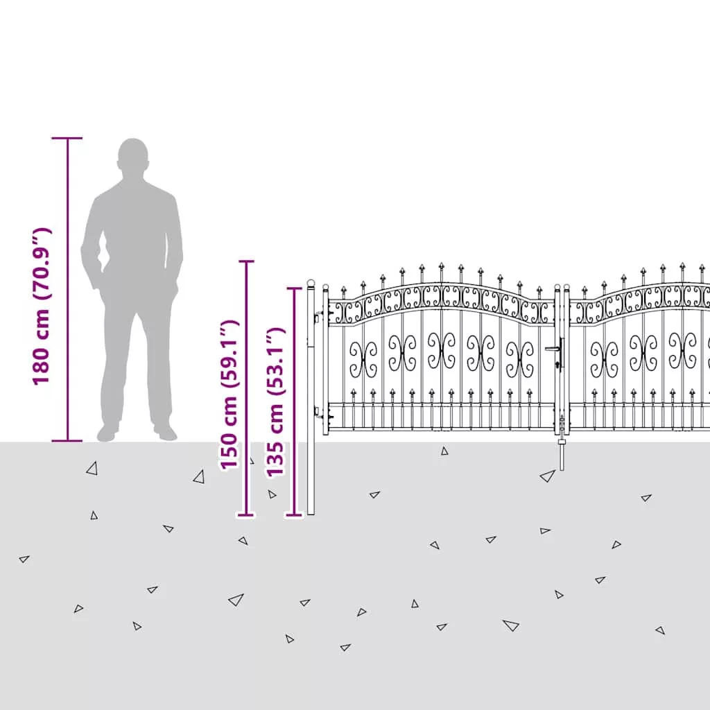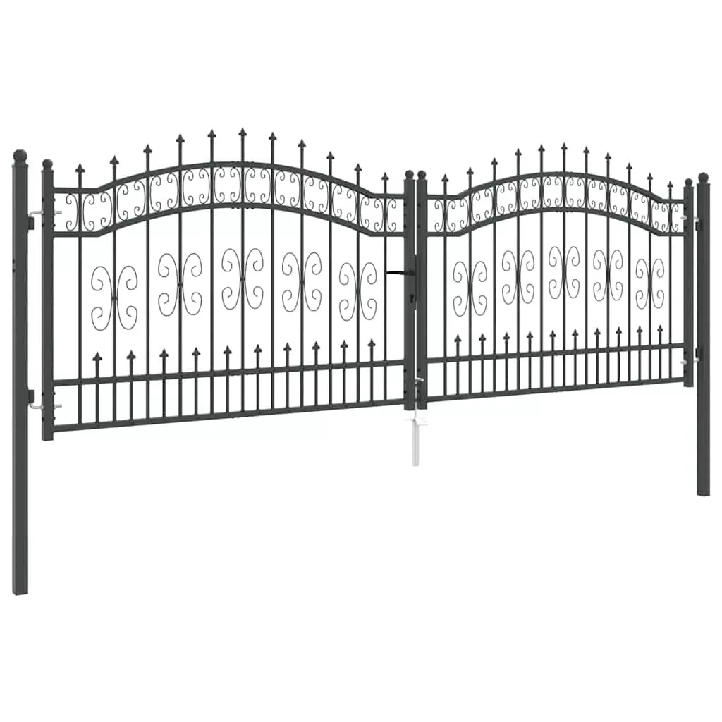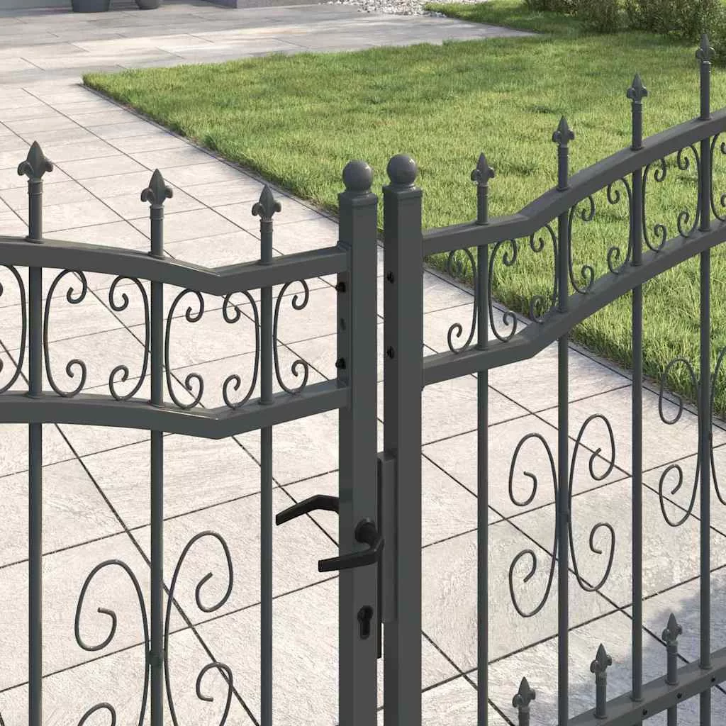 Kerítéskapu Lándzsa Tetejével zárral Szürke 305 x 100 cm Acél