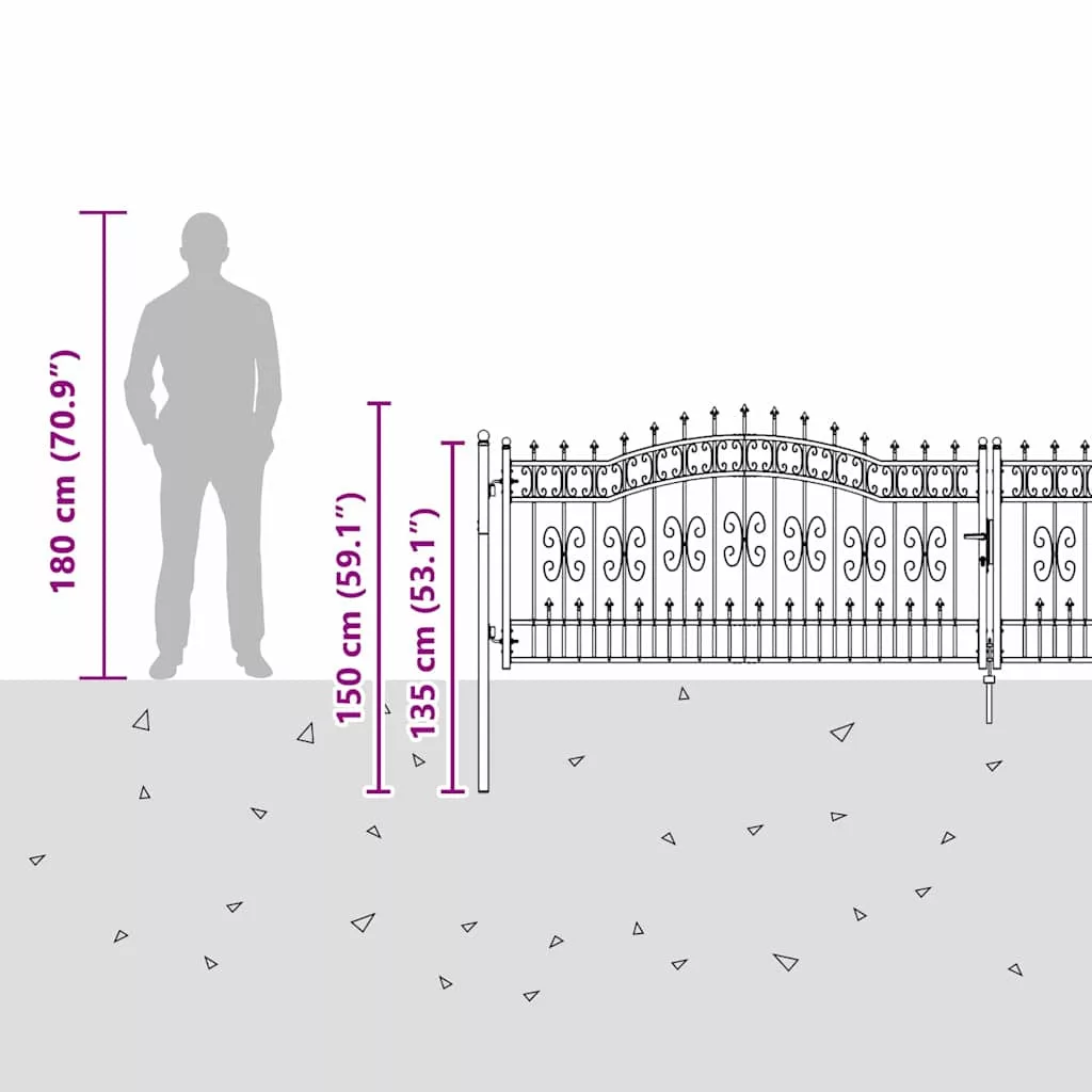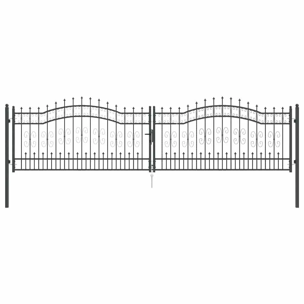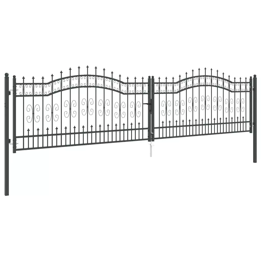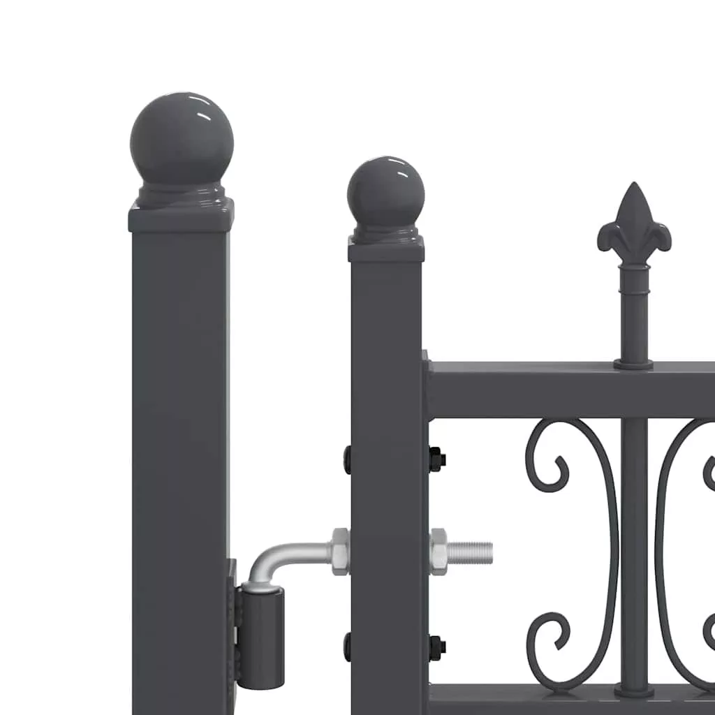 Kerítéskapu Lándzsa Tetejével zárral Szürke 404 x 100 cm Acél
