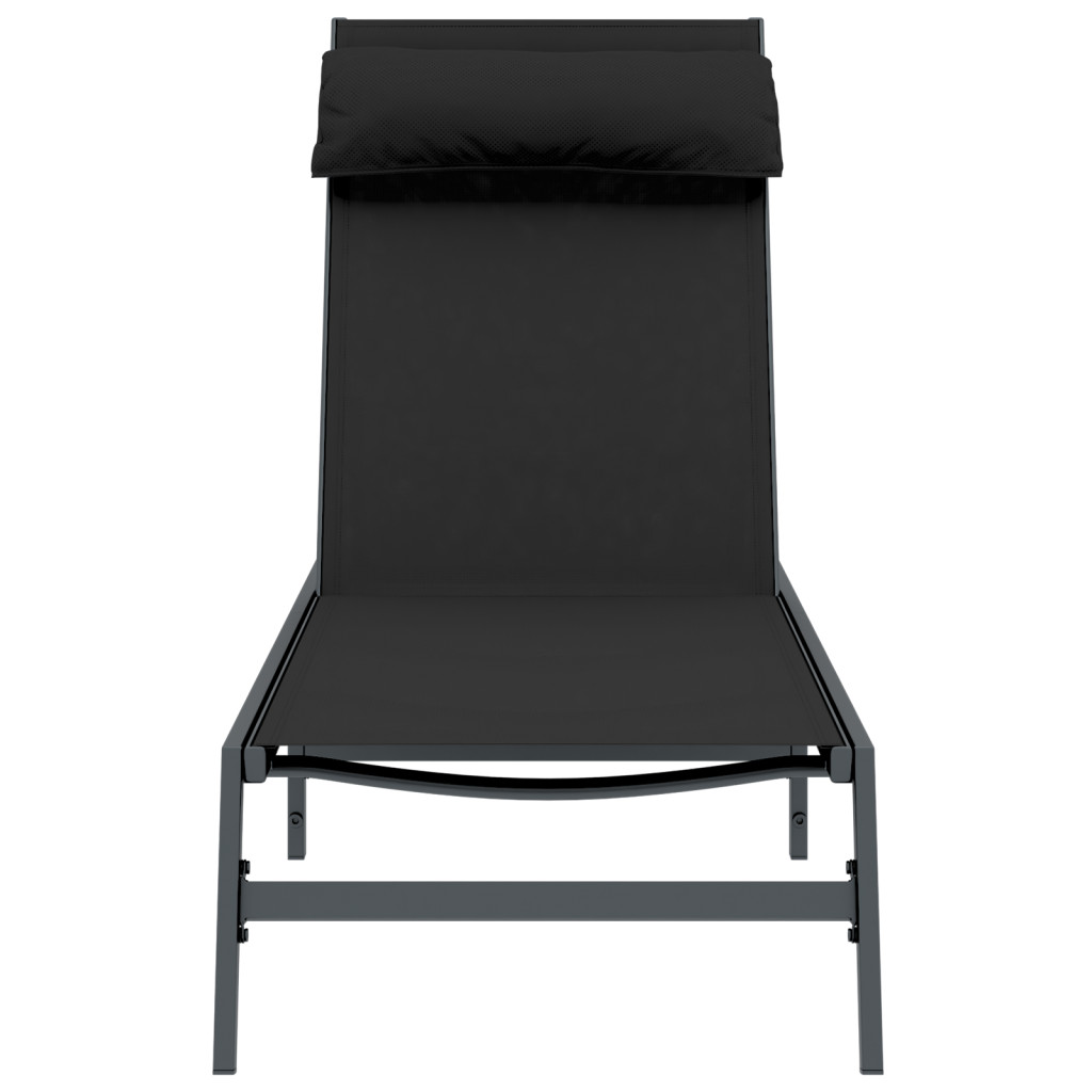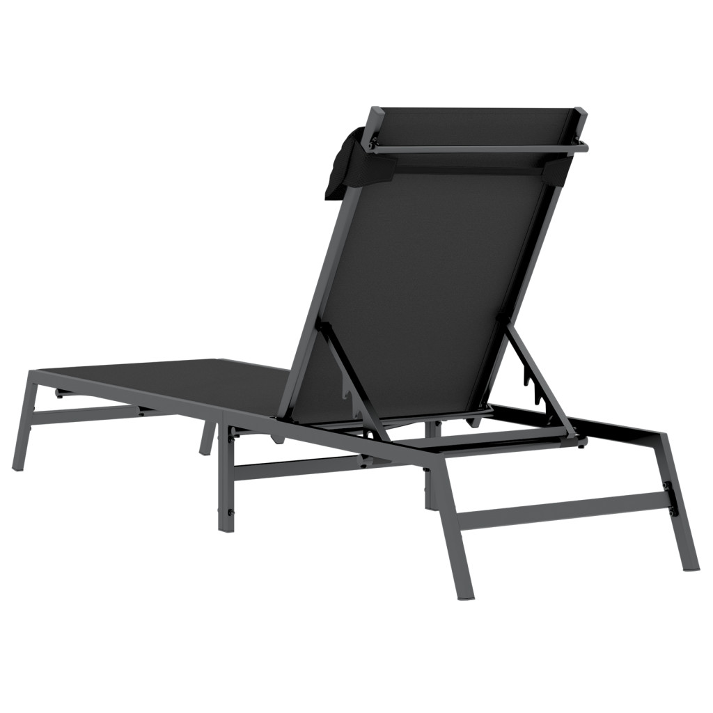 Napozóágy Fekete Acél, Textilén Egyszemélyes Állítható kartámlák
