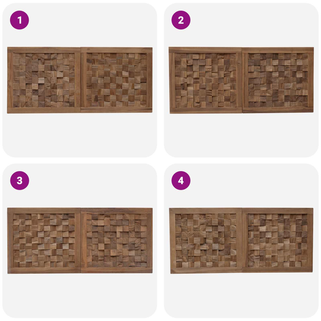 A fejvég egyedi dizájnja a rusztikus bájt és a modern stílust vegyíti, így bármilyen hálószobát kényelmes búvóhellyé alakít. Az összetett 3D-s hatás lenyűgöző vizuális dimenziót kölcsönöz, vonzó középpontot teremtve. Prémium anyag: Teljesen tömör tíkfa, amely páratlan tartósságot és vízállóságot ad, így évtizedekig megőrzi szépségét. Ez a természetes anyag fokozza a rusztikus, mégis elegáns érzetet benne. Falra szerelhető rendszer: Kényelem és stabilitás érdekében tervezve, rögzítő konzolokkal és csavarokkal a zökkenőmentes telepítésért. Ez a rendszer nemcsak biztonságosan rögzíti a fejvéget, hanem okosan spórol a hellyel is. 3D vizuális rétegezés: Ez a fejvég innovatív dizájnja mélységet ad a falaknak, hogy vonzó középpontot hozzon létre. Tökéletes választás azoknak, akik művészi elemeket szeretnének a hálószobájukba csempészni. Kopásálló kivitel: Rendkívül tartós, így hosszú távú elégedettséget nyújt anélkül, hogy feláldozná a megjelenését. Karbantartás: A szép felület megőrzéséhez csak egy száraz ruhával kell letakarítani a port és a szennyeződéseket. Így mindig fényes marad, és nem kell sokat törődnöd vele.