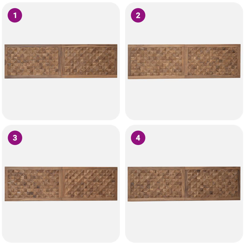 Ez a modern fejtámla az elegancia és a praktikum tökéletes keveréke, masszív tikfafából készült, hogy feldobja a hálószerkó légkörét rusztikus bájjal. Téglalap alakja nemcsak a fekvőhelyed szép háttérképe, hanem egy lenyűgöző darab is. A dizájn a rusztikus és parasztház stílusok meleg, hívogató esszenciáját hozza, így remek kiegészítője a hagyományos és modern környezeteknek. A természetes tónusok miatt könnyen illeszkedik bármilyen hálószoba dekorációhoz, sokoldalúságot és időtlen vonzerőt biztosít. Masszív tikfafából: Ezt a fejtámlát gondosan készítették masszív tikfafából, ami híres a tartósságáról és vízállóságáról. A tikfa természetes erezete egyedi textúrával és kellemes melegséggel teszi teljessé a hálószobát. Robusztus volta azt jelenti, hogy sokáig élvezheted, miközben vizuális báját és funkcionális tartósságát megőrzi. Falra szerelhető karmok: A falra szerelhető dizájn segít megspórolni a padlóhelyet és fokozza a hálószobád letisztult megjelenését. Kaphatsz az alapanyaghoz egy szerelési készletet és csavarokat is, hogy biztonságosan ki tudd rögzíteni a falhoz. Ideális kisebb szobákhoz, ami rendezett megjelenést biztosít. 3D hatás: A fejtámla 3D-s hatása mélységet és dimenziót ad a térnek, illúziót teremtve arról, hogy a szoba nagyobb és dinamikusabb. Ez a vizuális rétegezés magával ragadó középpontot hoz létre, amely felkelti az érdeklődést és gazdagítja a belső tér összetettségét. Rusztikus és parasztház stílus: A dizájn megtestesíti a rusztikus és parasztház hangulatát, ami természetes szépséget közvetít a robusztus és kifinomult elemek keverékével. A fejtámla esztétikája segít egy kellemes, barátságos hálószoba légkör megteremtésében, ami hívogató és tartós, különféle belső témákhoz illik. Könnyű telepítés: A tervezés a könnyedségre törekszik, a telepítési folyamat egyszerű és hatékony. Bár neked kell rögzítened a fejtámlát, a mellékelt útmutatók segítenek a zökkenőmentes beállításban. Ez biztosítja, hogy a fejtámla stabil és megbízható része marad a hálószobádnak.