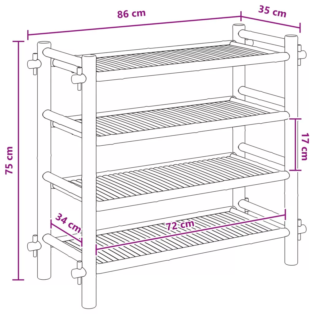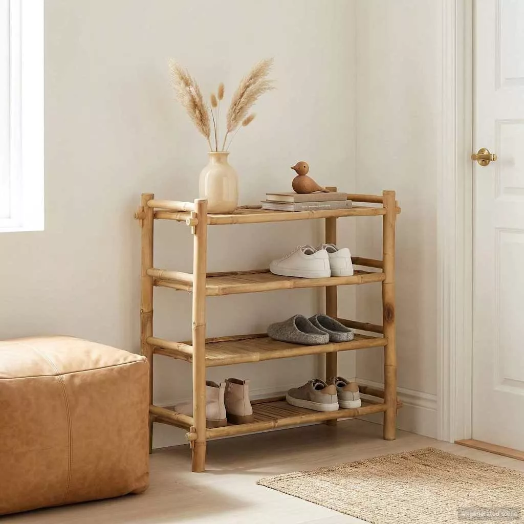 Cipőtartó polcokkal Természetes 4-szintes Bambusz