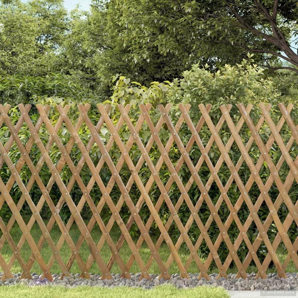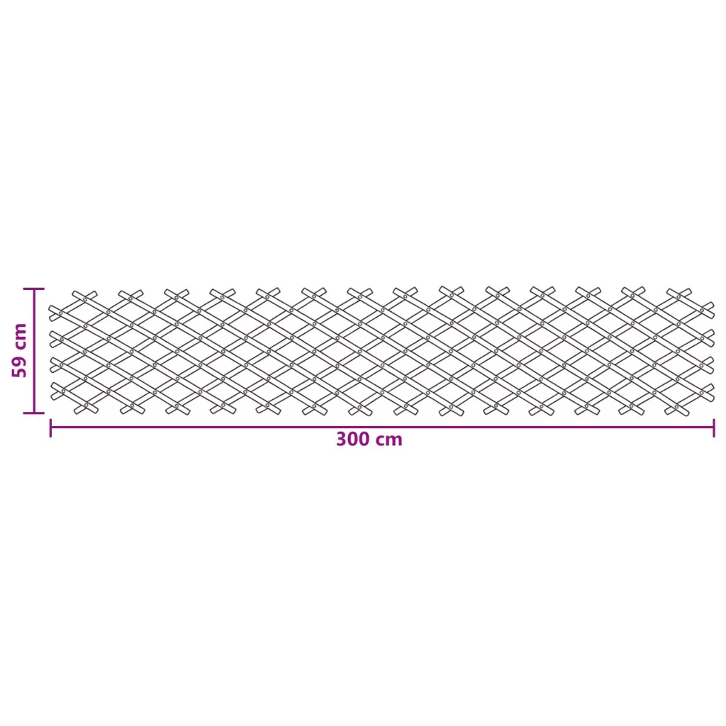 Ez a szétszedhető bambuszos trellis kerítés tökéletes sokféle használatra a kertben. Természetes bambuszból készült és állítható, így különböző helyekre illeszkedik. Növénytámogatásként, kertdíszként, gyep-elhatárolásra is jó. A felület könnyen tisztítható és ideális a mindennapi kültéri használathoz. Bambusz szerkezet: Masszív bambuszból készült, így biztosítja a megfelelő támogatást a kültéri környezetednek, miközben megőrzi a praktikus tulajdonságokat. Kihúzható trellis dizájn: Lehetővé teszi a szélesség igény szerinti beállítását. Kiterjeszthető vagy összehajtható, így sokfajta kertelrendezéshez illik. Sokféle használat: Alkalmas kert díszítésére, növényi támaszként, vagy gyepelhatárolásra. Segíthet az ösvények, virágágyások vagy más kertrészek kijelölésében is. Mászó növények támogatása: Rácsos szerkezetének köszönhetően támogatást nyújt a mászó növényeknek, mint a szőlő vagy virágok. Segít a növények fejlődésének irányításában. Alacsony karbantartás: A bambuszfelület könnyen tisztán tartható. Csak letörölni vagy öblíteni kell, ami praktikus a rendszeres kültéri használathoz.