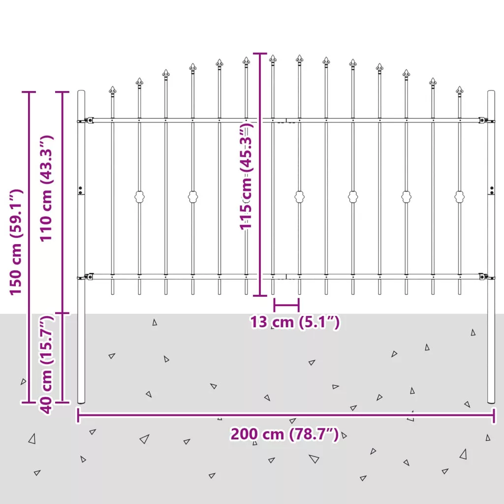 Tüskés kerítés Fekete 200 x 150 cm Porszórt acél