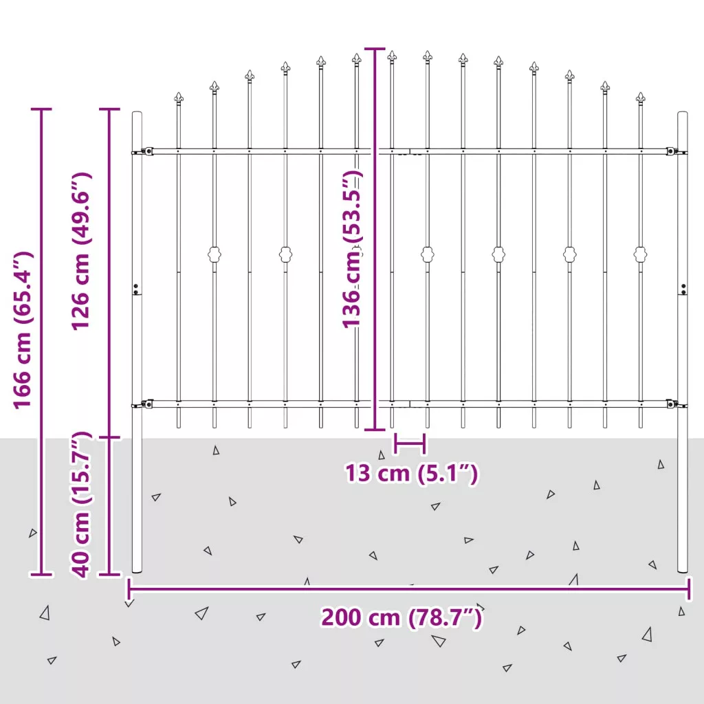 Tüskés kerítés Fekete 200 x 130 cm Porszórt acél
