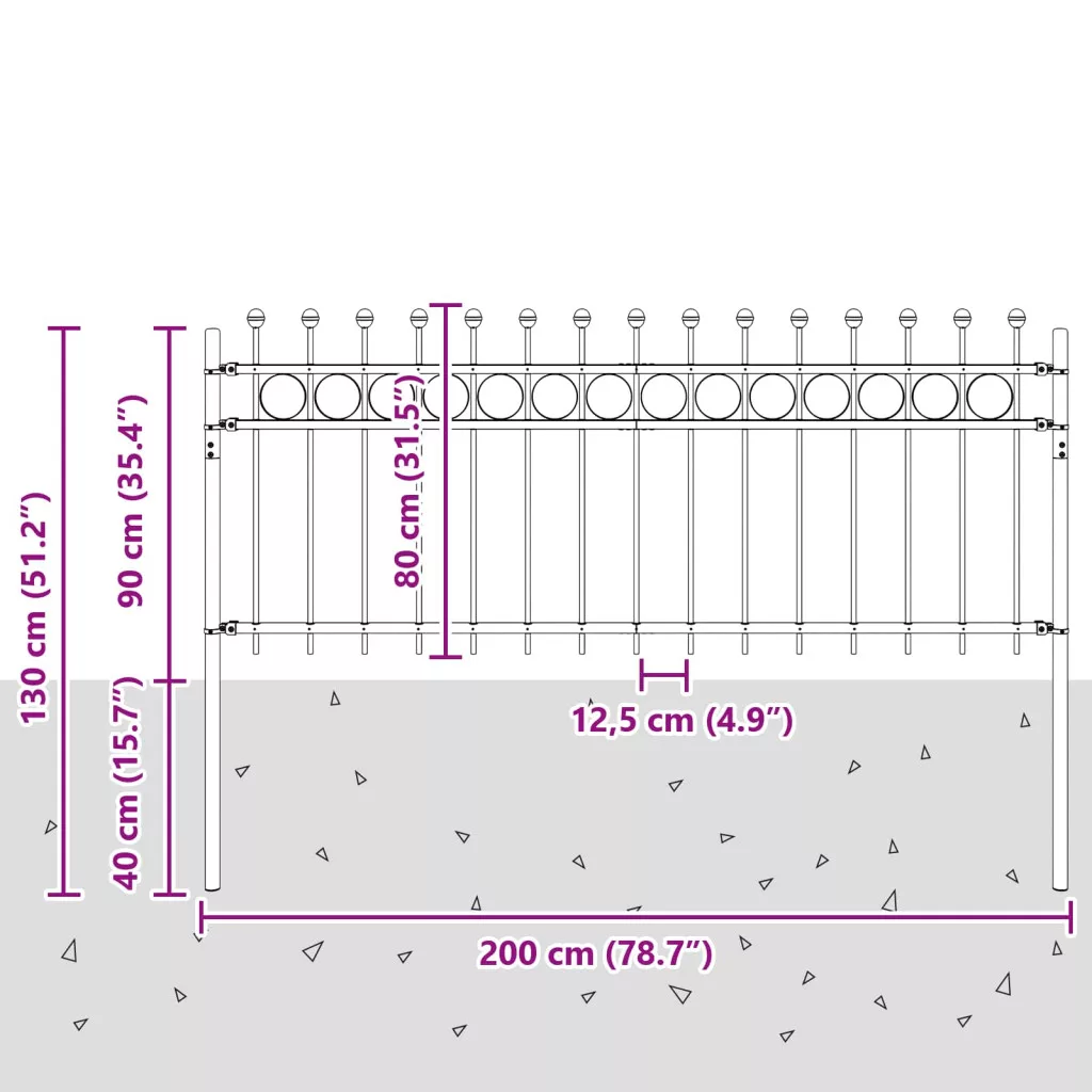 Gyűrűs Kerítés Fekete 200 x 130 cm Porszórt acél