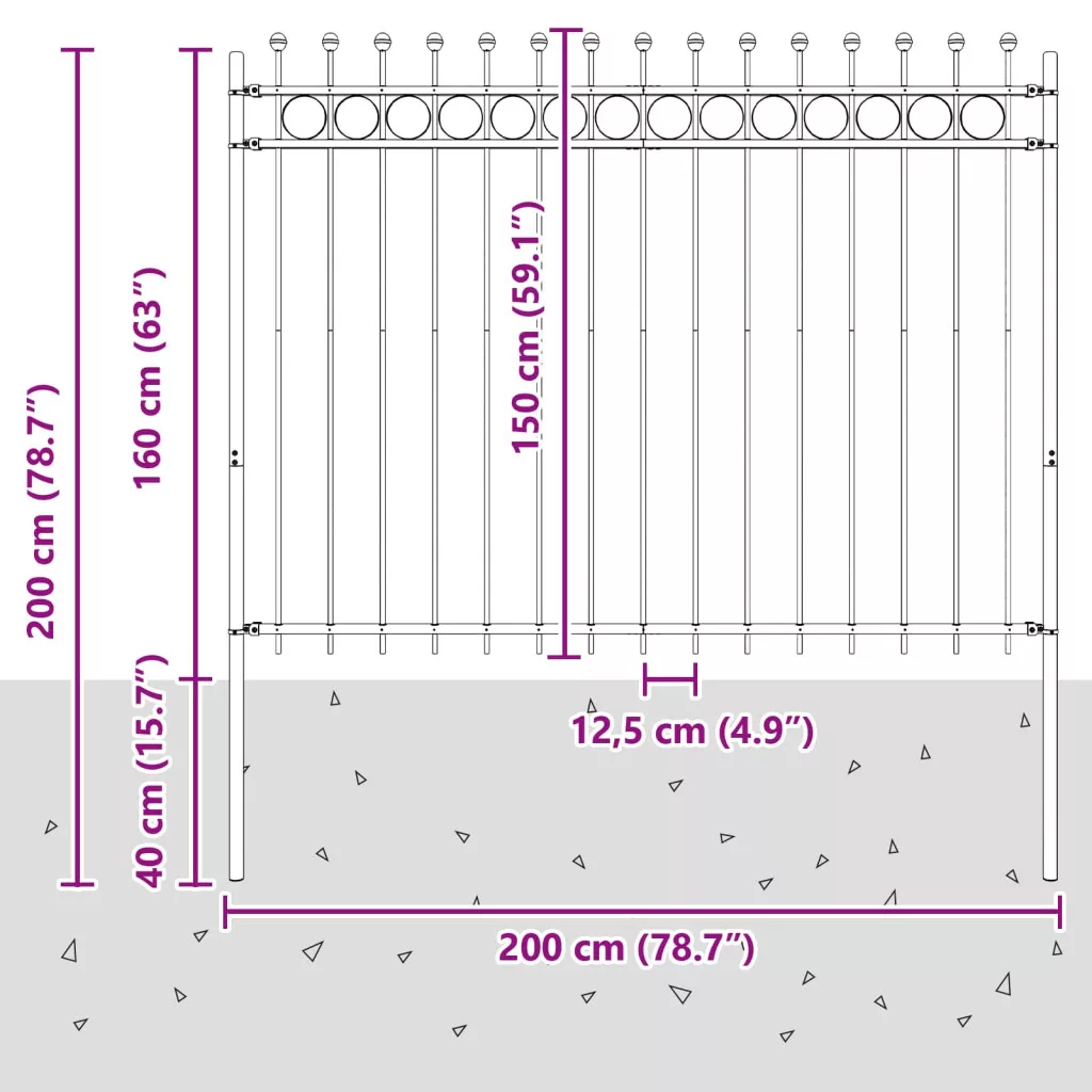Gyűrűs Kerítés Fekete 200 x 200 cm Porszórt acél