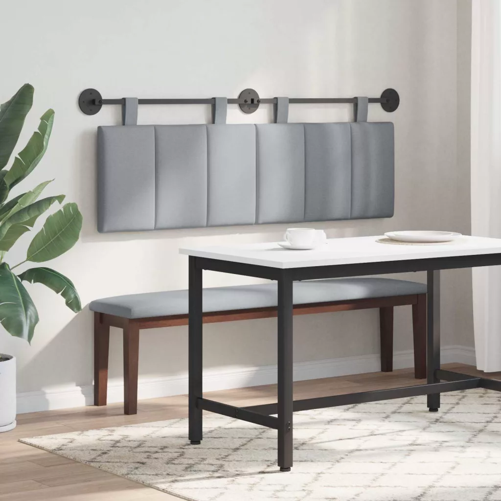 Ez a modern függő fejtámla a stílus és a funkcionalitás tökéletes keveréke. A vékony, téglalap alakú és elegáns csíkozás miatt bármilyen hálószobát feldob. A puha kárpitozás ideális pihenésre, olvasásra vagy egyszerűen csak ücsörgésre. Kifinomult egyszerűsége miatt bármilyen belsőépítészeti stílushoz passzol. Elegáns szövet 100%-ban poliészterből készült, szuperkényelmes és tartós. A kopásálló anyag hosszú távon megőrzi puhaságát és esztétikáját. Egyszerű rögzítés Porbevonatú fémtartóval és tartozékokkal érkezik, ami megkönnyíti a falra szerelést. Stabil rögzítést biztosít, így penne van a tiszta, modern megjelenés. Állítható övek A levehető övek rugalmasságot adnak a különböző elhelyezésekhez, így bátran variálhatod a dizájnt az ízlésed szerint. Puhaság Habbel kárpitozva, ami tökéletes támaszt biztosít az ágyban. Segít az ergonómiai kényelemben, így jobban tudsz pihenni. Egyszerű karbantartás Csak egy száraz ruhát kell használnod a tisztításhoz. Így mindig friss marad, ráadásul nem kell különösebb tisztítószereket használni.