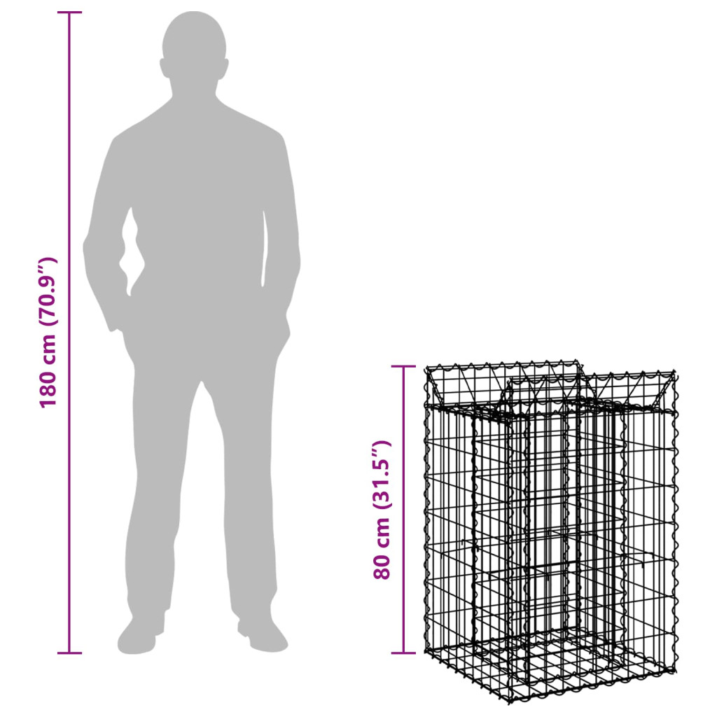 Gabion emelt ágy Ezüst 50 x 50 x 80 cm Horganyzott acél