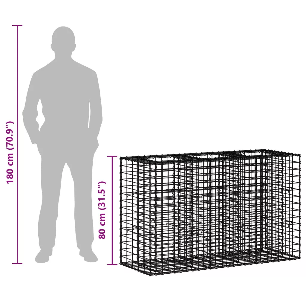 Gabion emelt ágy Ezüst 130 x 50 x 80 cm Horganyzott acél