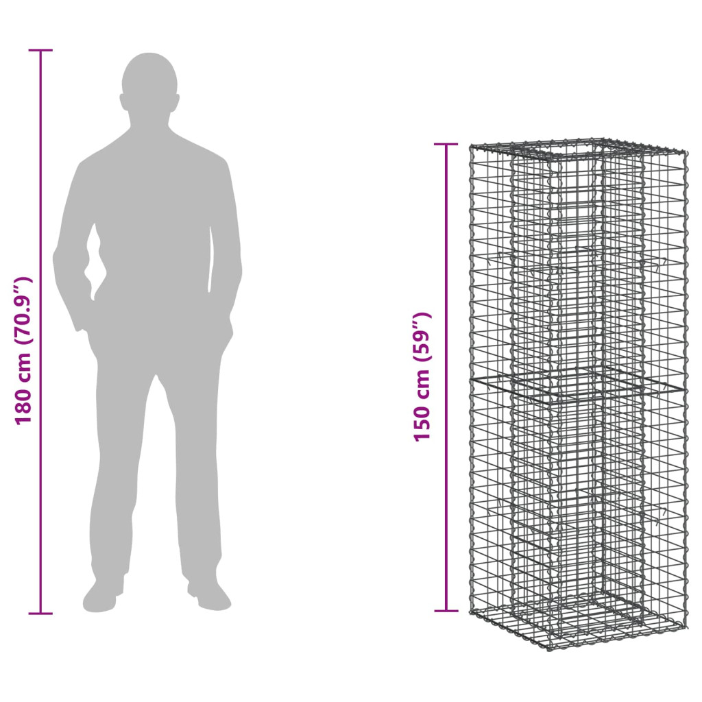 Gabion emelt ágy Ezüst 50 x 50 x 150 cm Horganyzott acél