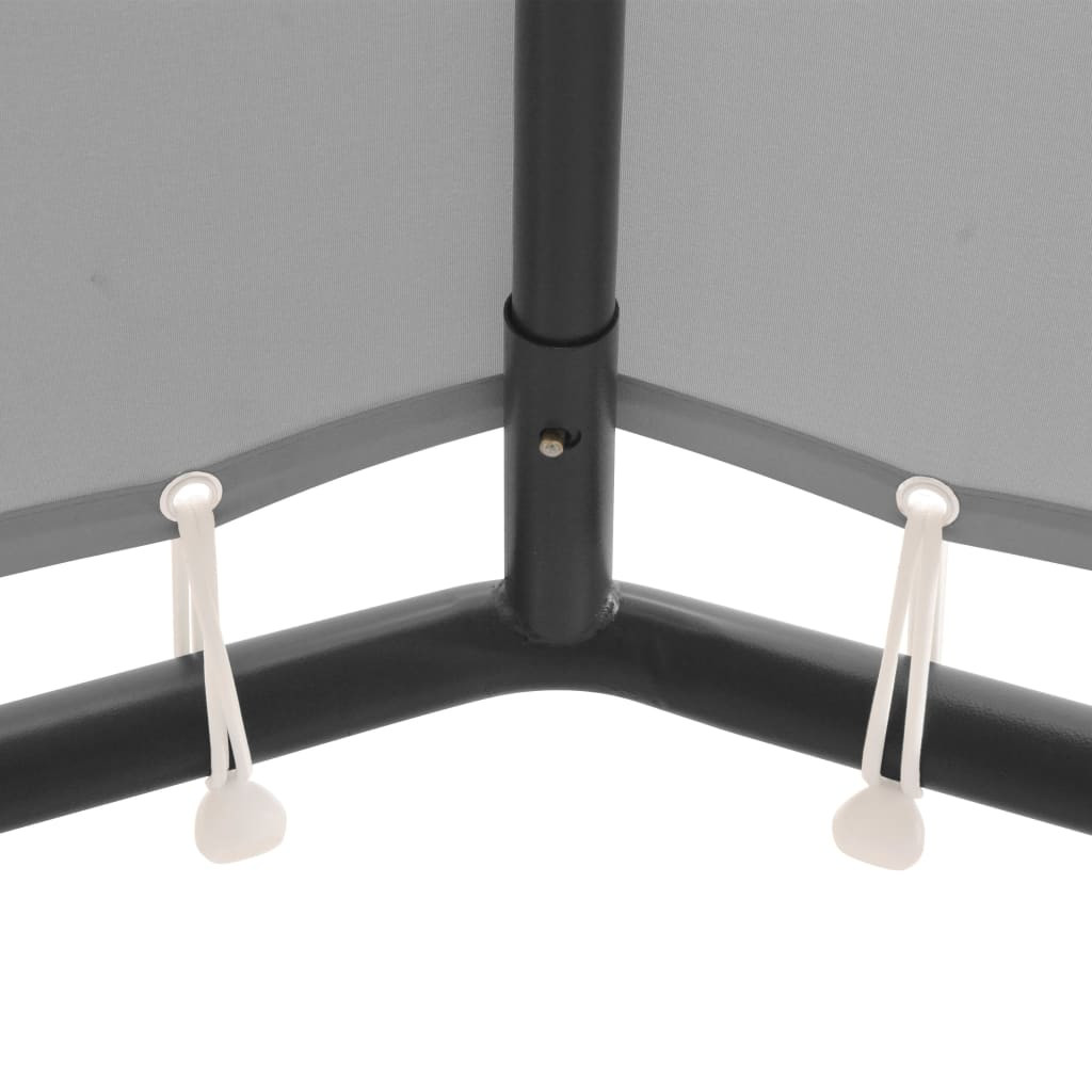 Pihenjen kertjében vagy teraszán modern, de praktikus pavilonunk alatt! Ez a sátor a tökéletes helyszínt biztosítja családi összejövetelekhez, kerti grillezéshez, délutáni piknikezéshez, kempingezéshez vagy akár ünnepélyes rendezvények lebonyolításához. Ez a pavilon PA bevonatú, kiváló minőségű oxford szövetből készült, így ellenáll az UV sugaraknak, valamint a porszórt acélváznak köszönhetően a kerti pavilon tartós és tökéletes kültéri használatra. A gombok segítségével egyszerűen hozzákapcsolhatja a tetőponyvát a pavilon vázához. A pavilon könnyen összeszerelhető. Megjegyzés: ezt a terméket SOHA nem szabad rossz időben, például erős szélben, heves esőzésben, hóban, viharban stb. használni.