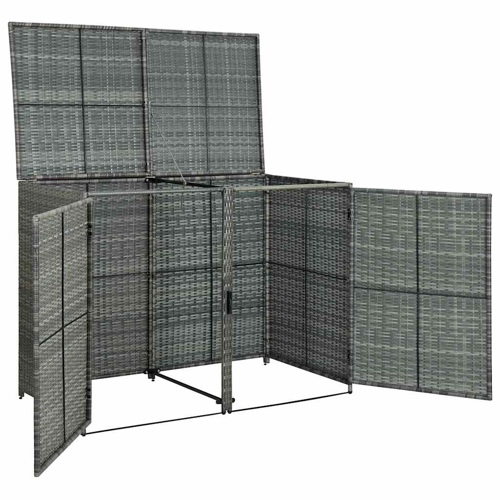 antracit polyrattan dupla tároló gurulós kukához 148x77x111 cm