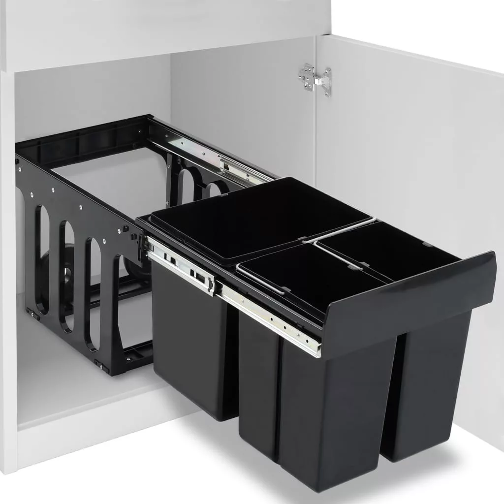 Ez a kuka ideális megoldás minden konyhában. Beszerelheti a szekrénybe, hogy a nem kívánt hulladék ne legyen szem előtt. Három különálló kukát tartalmaz, így gyerekjáték lesz a szelektív hulladékgyűjtés. A tartályok az alapos tisztítás érdekében teljesen kivehetők. Emellett a lágyan csukódó mechanizmus védi a bútorokat, és biztonságosabb a gyermekek számára. A tető és a burkolat minőségi ABS-ből és műanyagból készült, amelyek a tartósság érdekében korróziómentesek. A kihúzható kuka könnyen összeszerelhető.