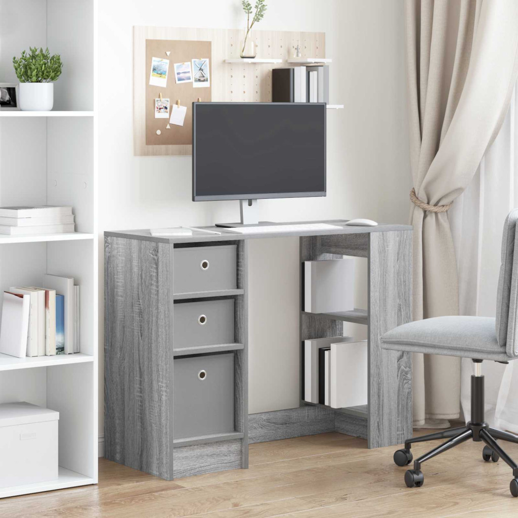 Asztal fiókkal polcokkal Szürke Sonoma 100 x 40 x 75 cm Faanyag