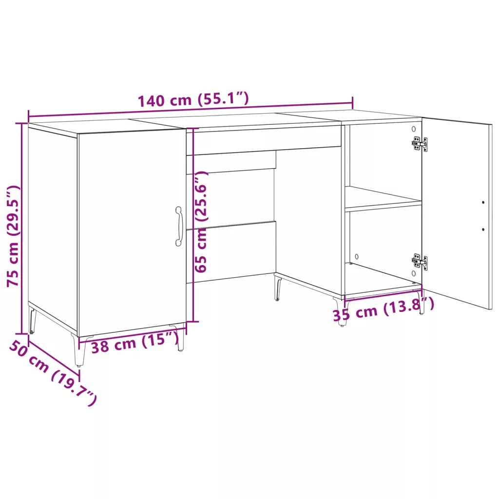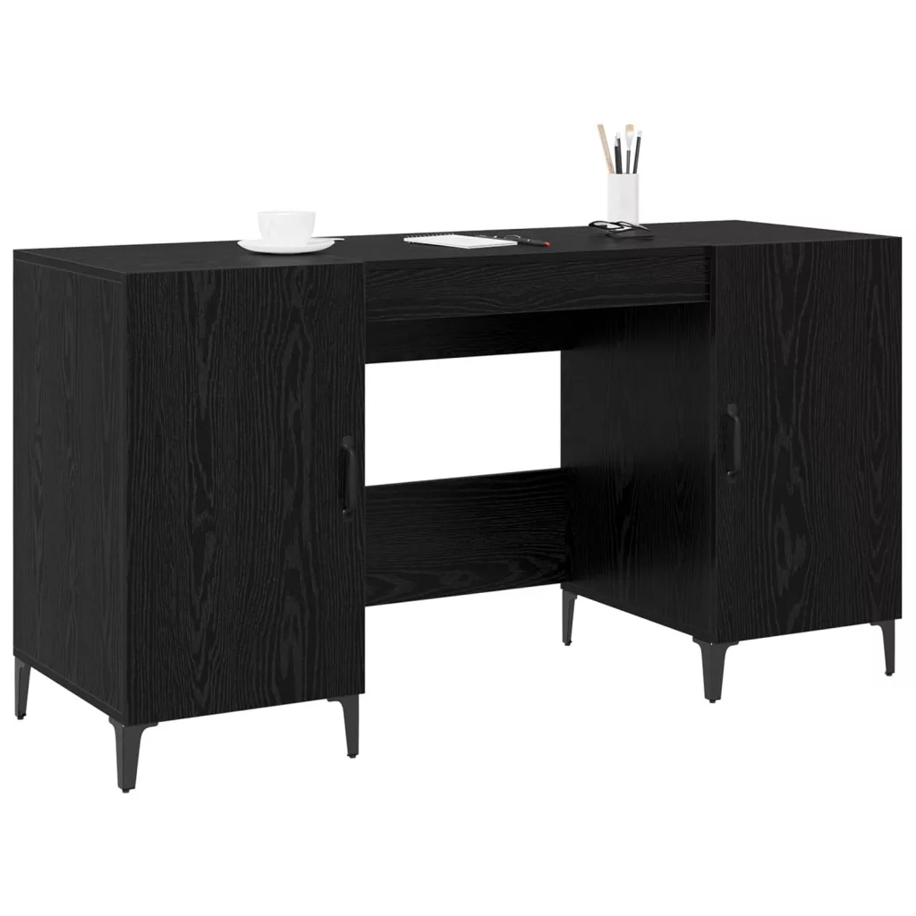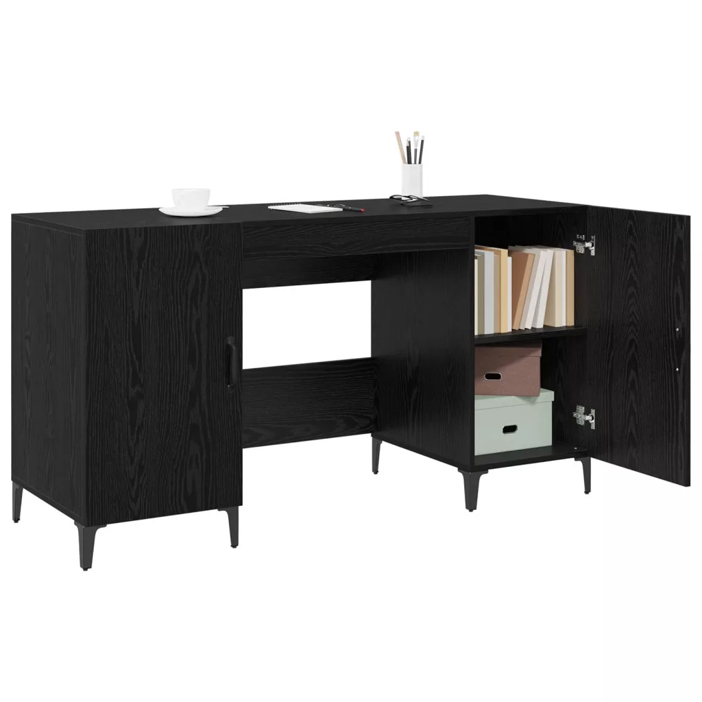 Asztal tárolóval ajtóval Fekete tölgy 140 x 50 x 75 cm Faanyag
