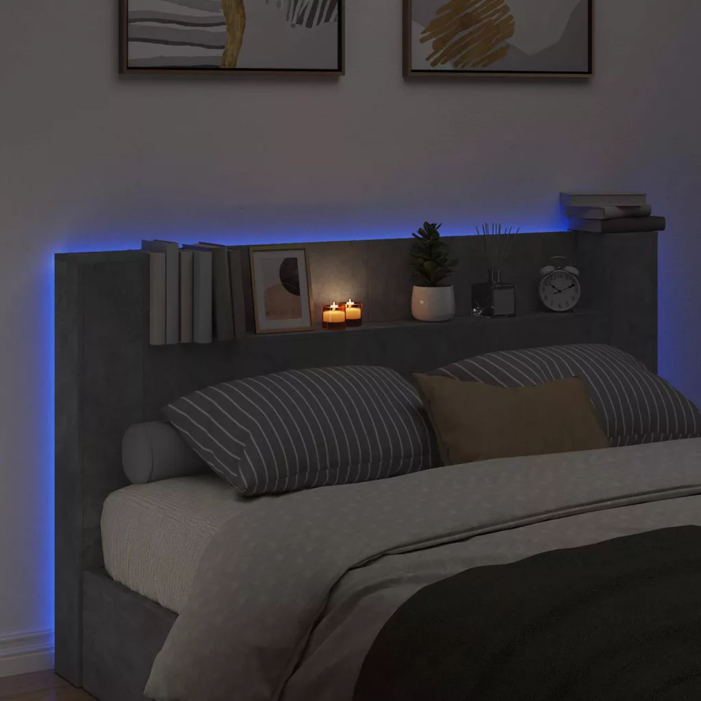 LED-es Fejtámla Szekrény Beton 180 x 16,5 x 103,5 cm Faanyag
