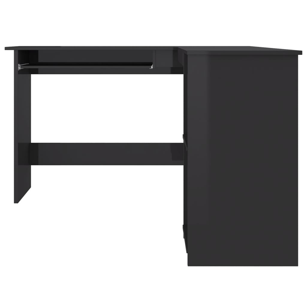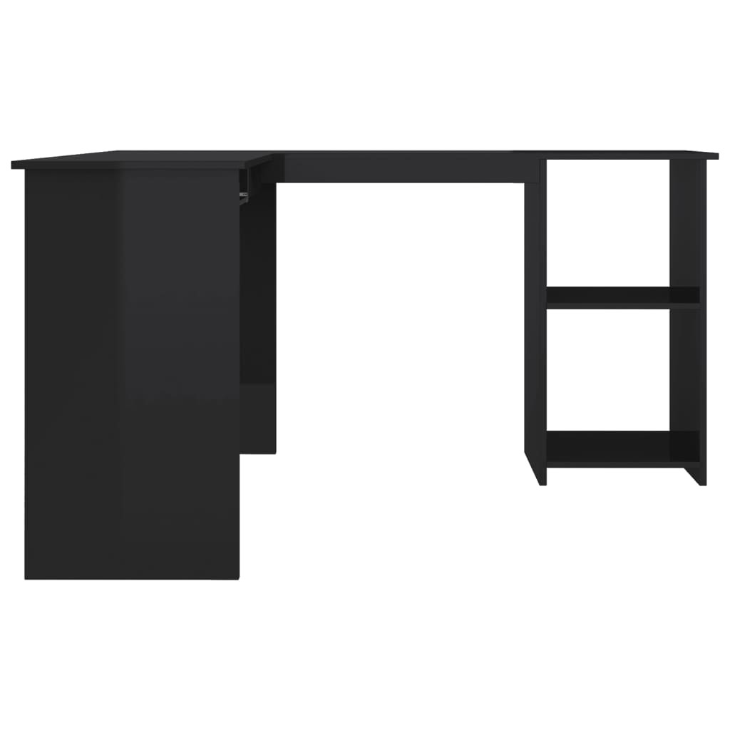 magasfényű fekete forgácslap L-alakú íróasztal 120x140x75 cm
