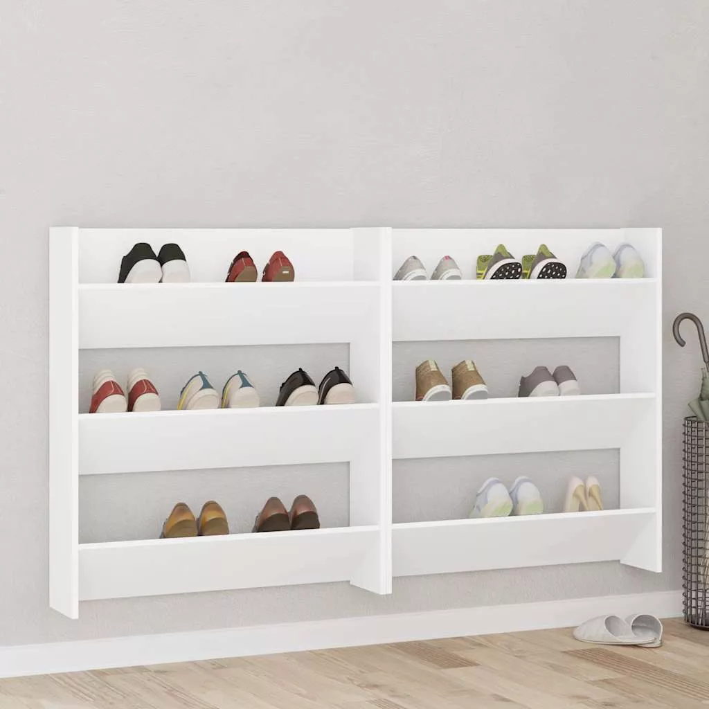 2 db fehér forgácslap fali cipősszekrény 80 x 18 x 90 cm