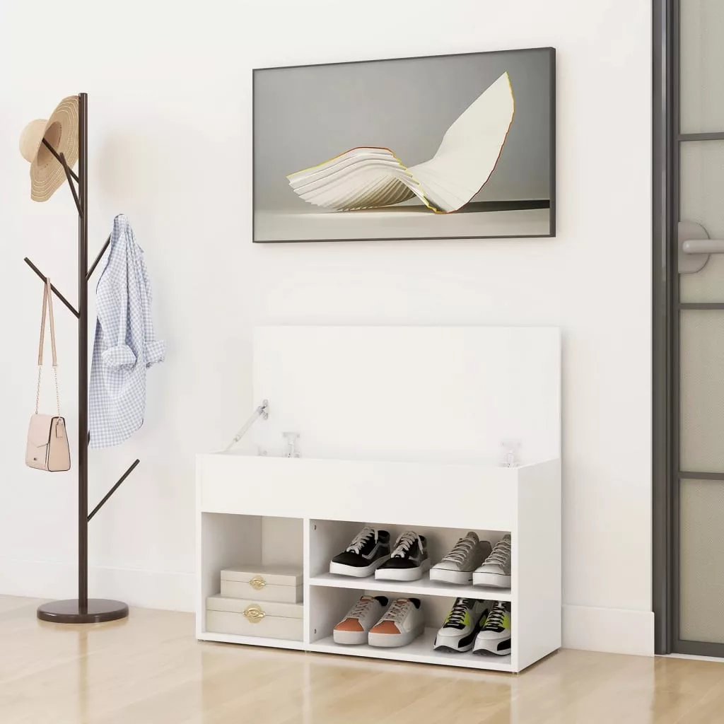 fehér szerelt fa cipőtároló pad 80 x 30 x 45 cm