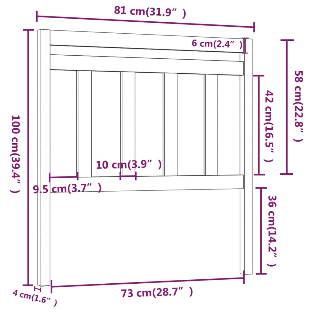 szürke tömör fenyőfa ágyfejtámla 81 x 4 x 100 cm