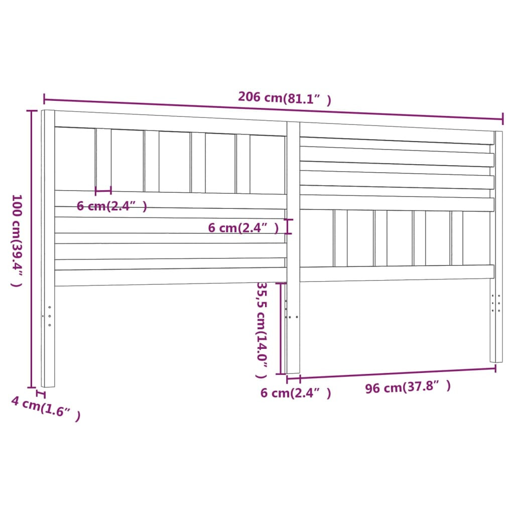 fekete tömör fenyőfa ágyfejtámla 206 x 4 x 100 cm