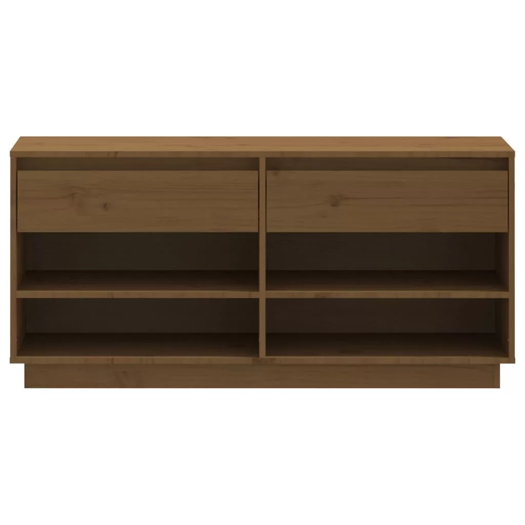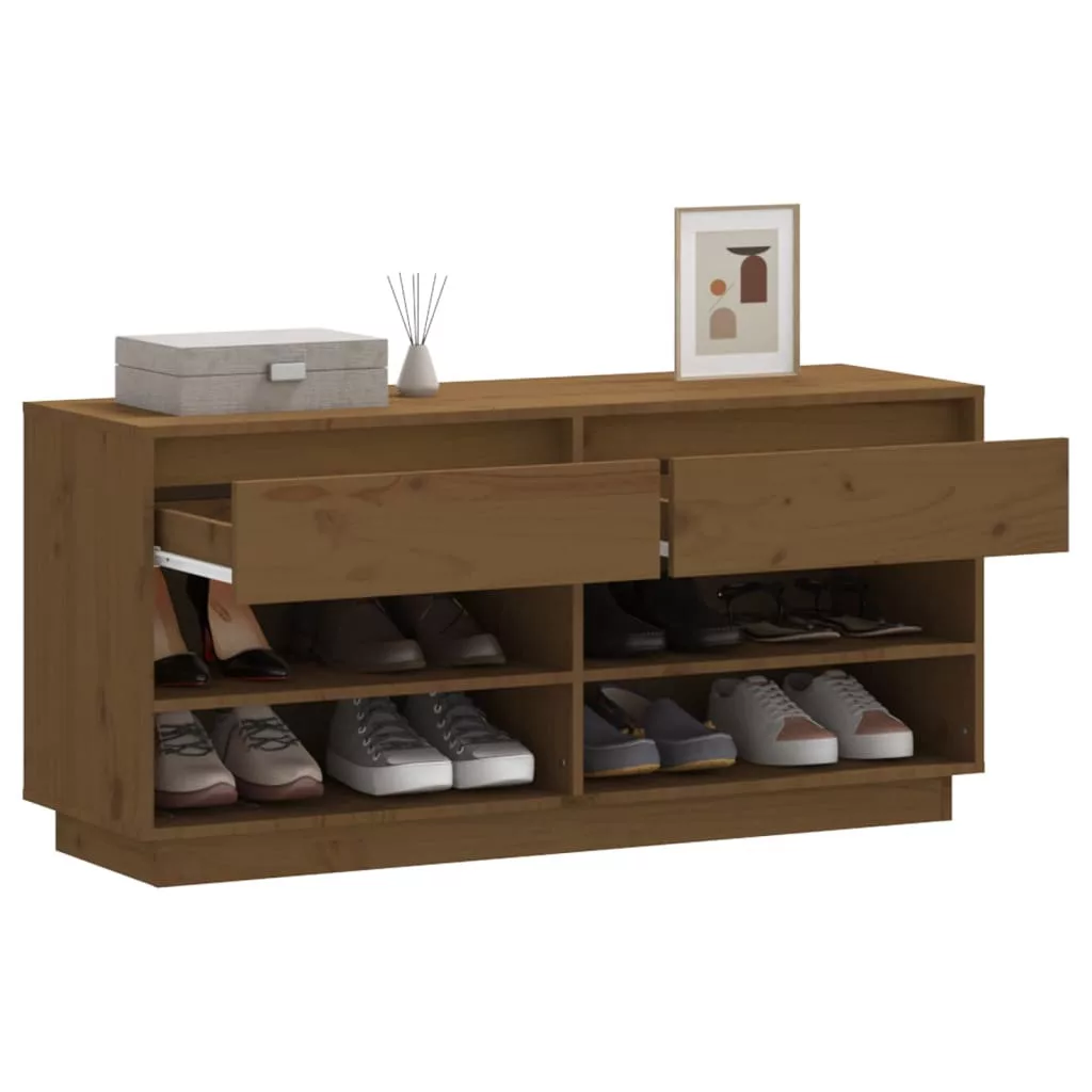 mézbarna tömör fenyőfa cipőszekrény 110 x 34 x 52 cm