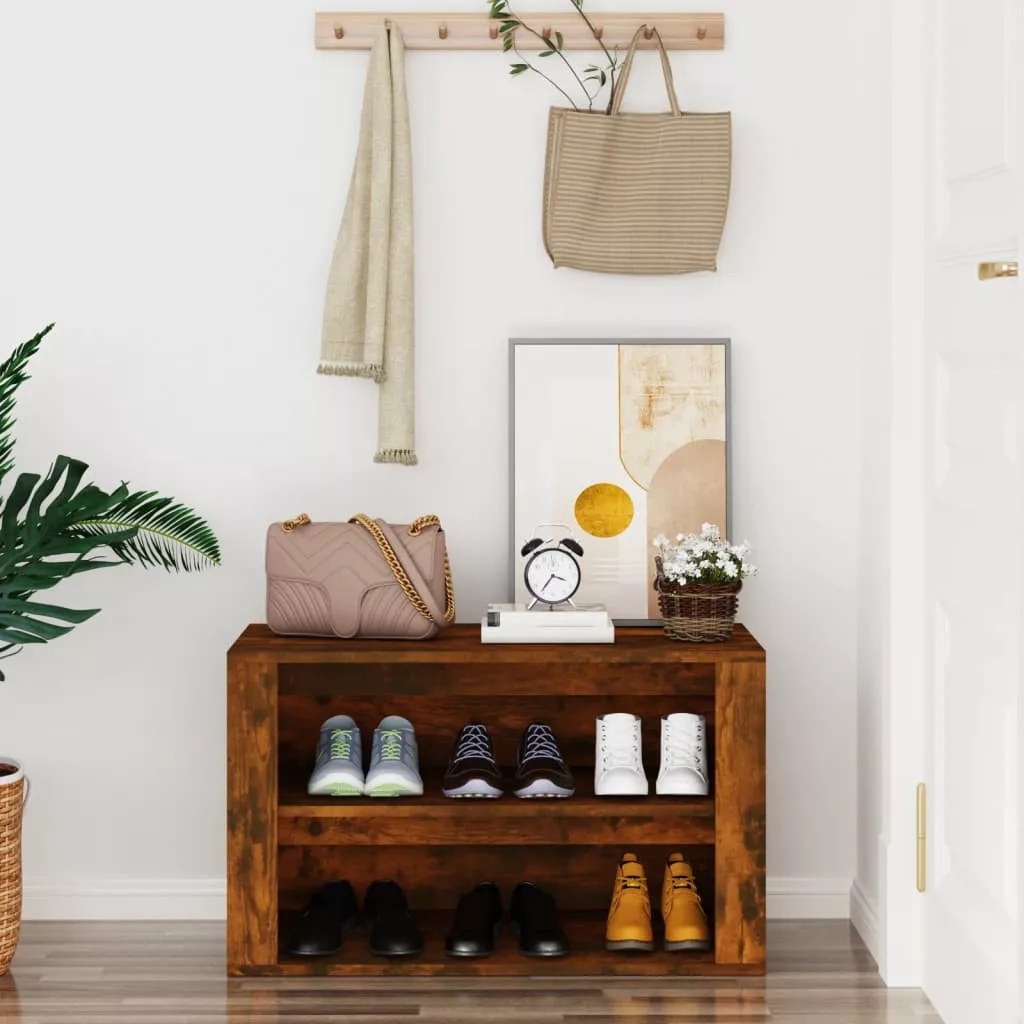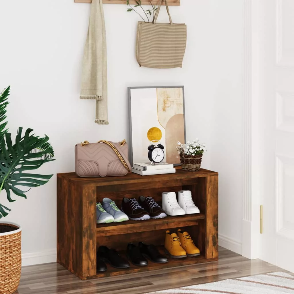 füstös tölgy színű szerelt fa cipőtartó 75x35x45 cm