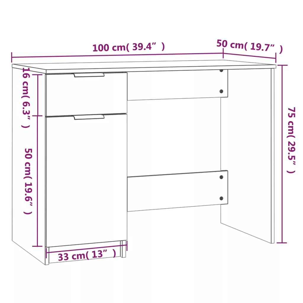 füstös tölgyszínű szerelt fa íróasztal 100 x 50 x 75 cm