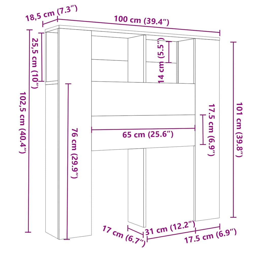 Méretek: 100 x 18,5 x 104,5 cm (Szé x Mé x Ho)
