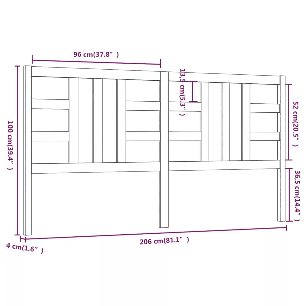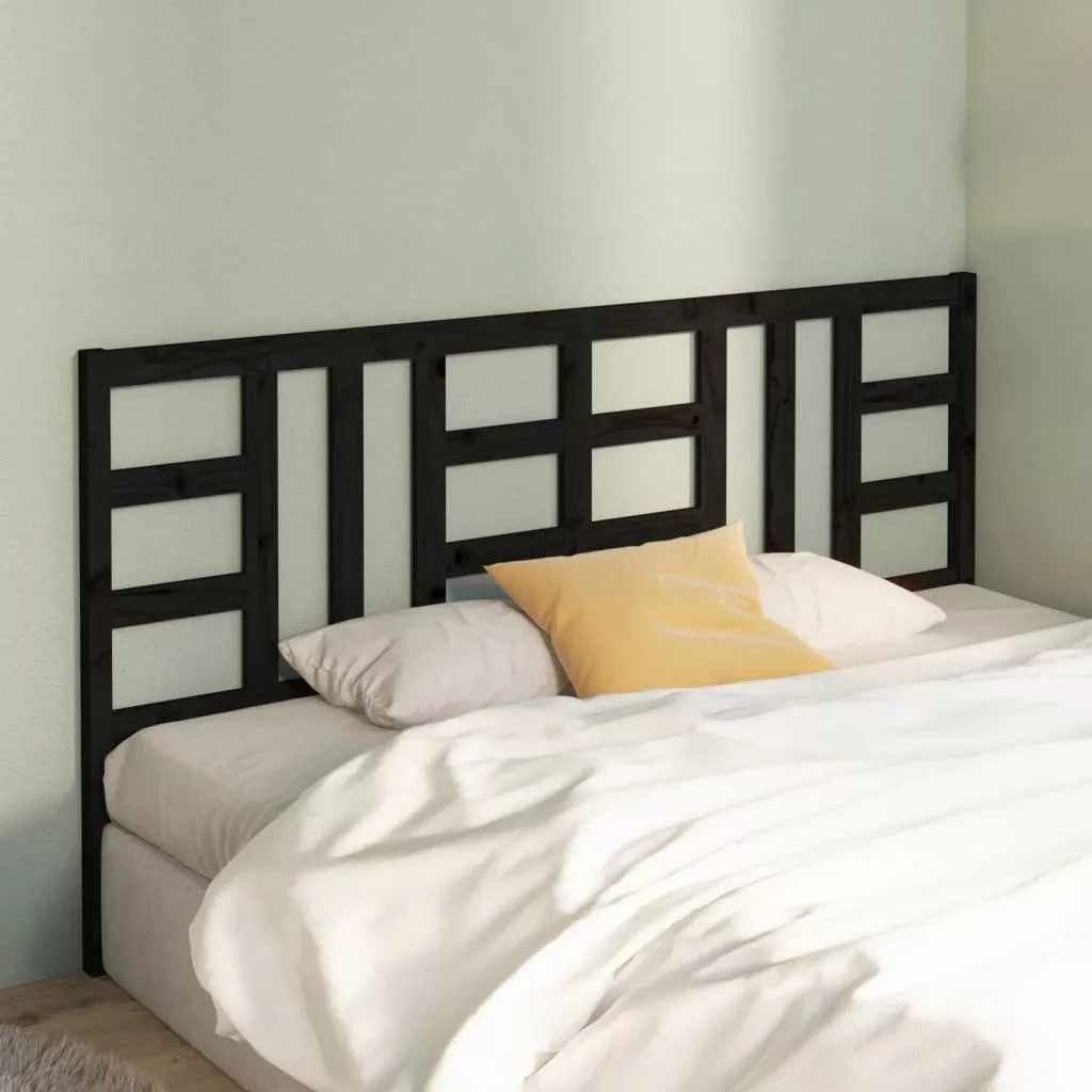 fekete tömör fenyőfa ágyfejtámla 206 x 4 x 100 cm