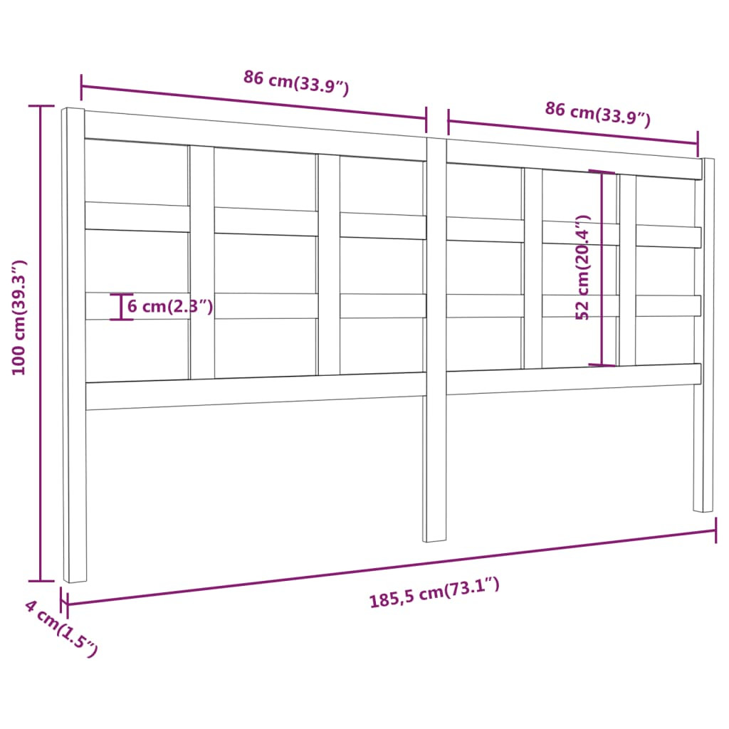 mézbarna tömör fenyőfa ágyfejtámla 185,5x4x100 cm
