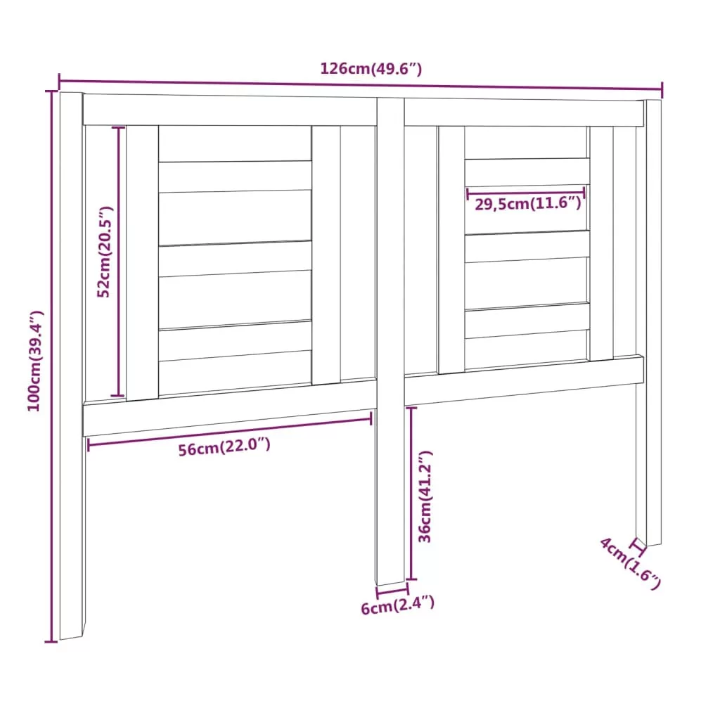 szürke tömör fenyőfa ágyfejtámla 126 x 4 x 100 cm