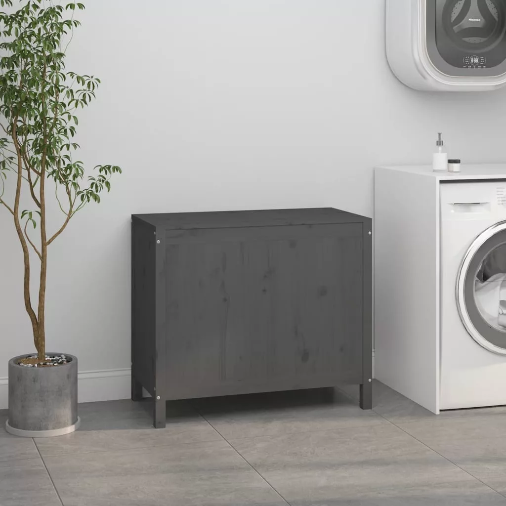 szürke tömör fenyőfa szennyestartó láda 88,5 x 44 x 76 cm