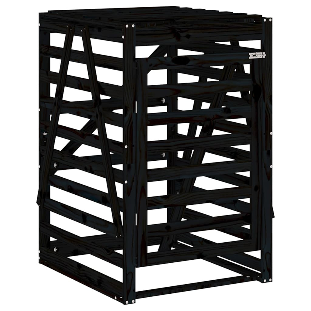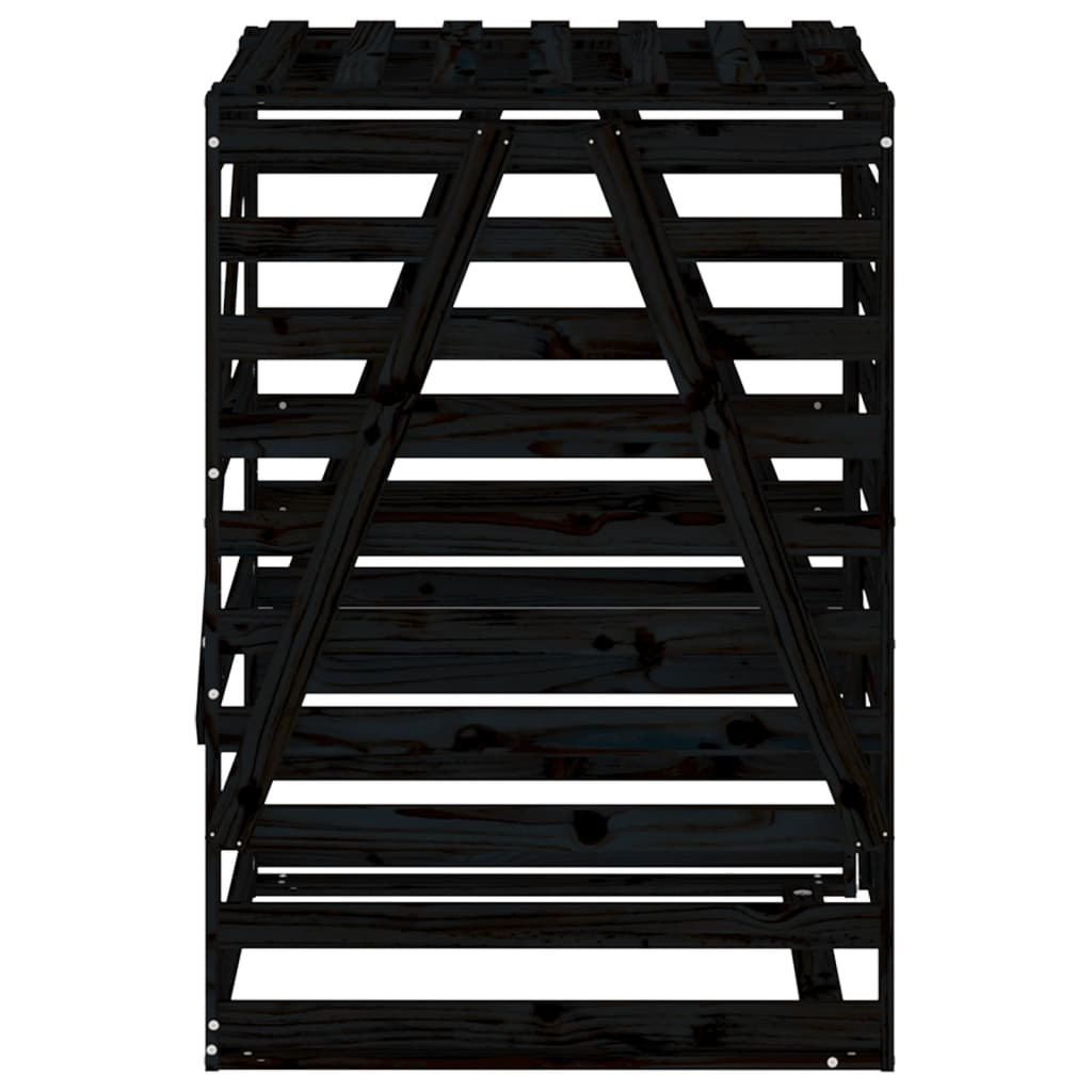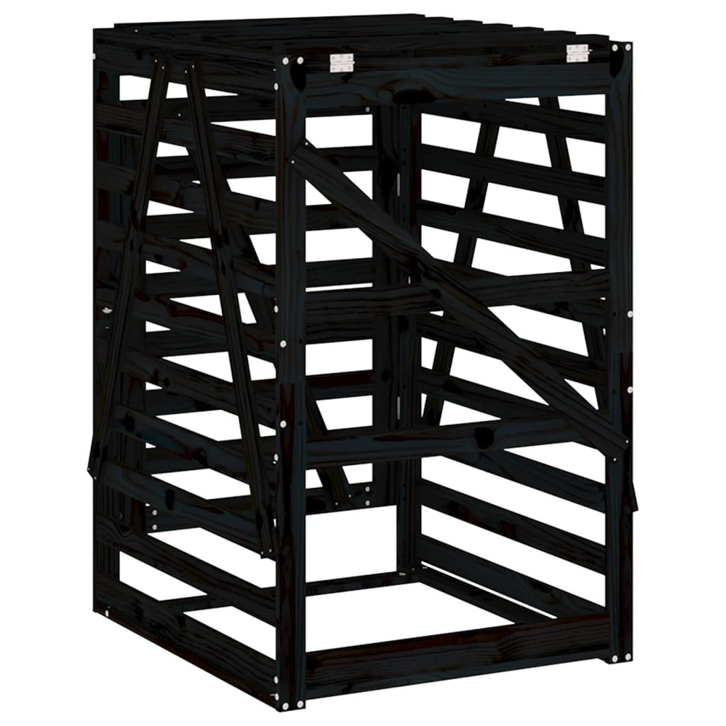 fekete tömör fenyőfa szemeteskuka tároló 84x90x128,5 cm