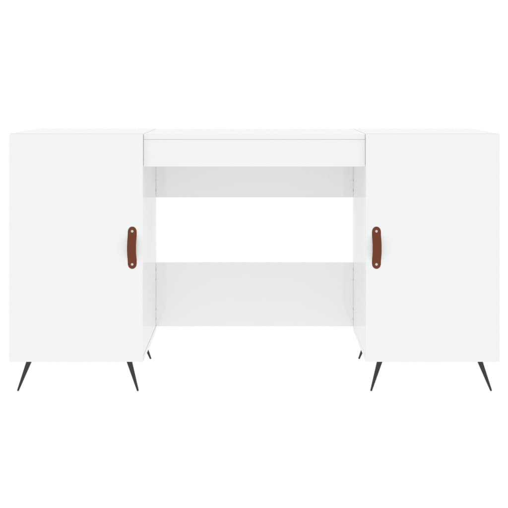 magasfényű fehér színű szerelt fa íróasztal 140 x 50 x 75 cm