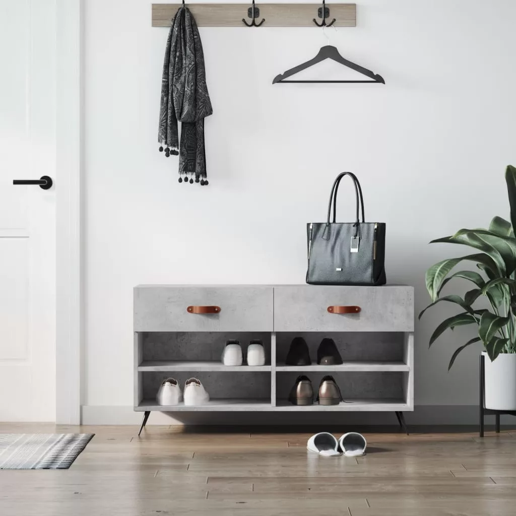 betonszürke szerelt fa cipőpolc 102 x 35 x 55 cm