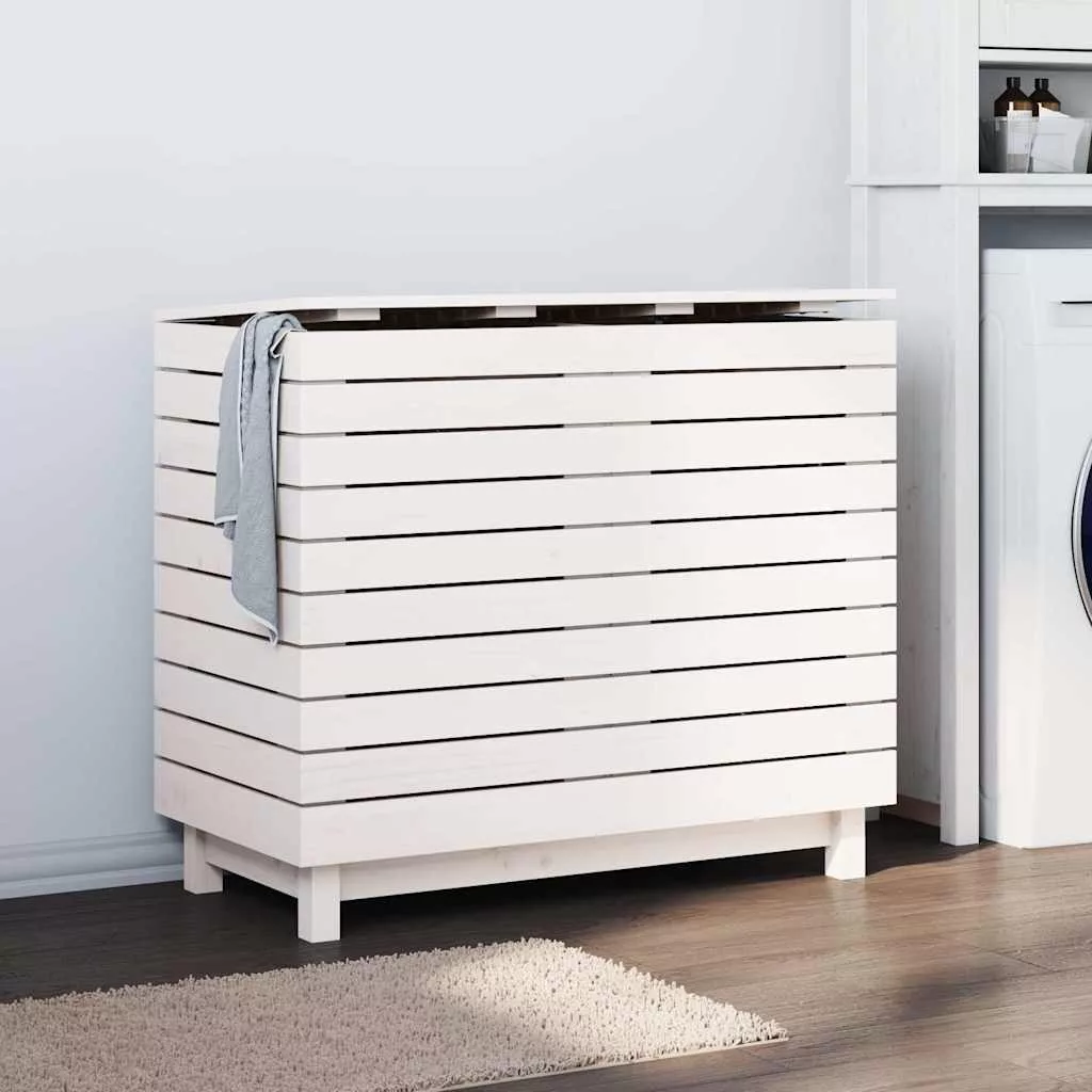 fehér tömör fenyőfa szennyeskosár 88,5x44x76 cm