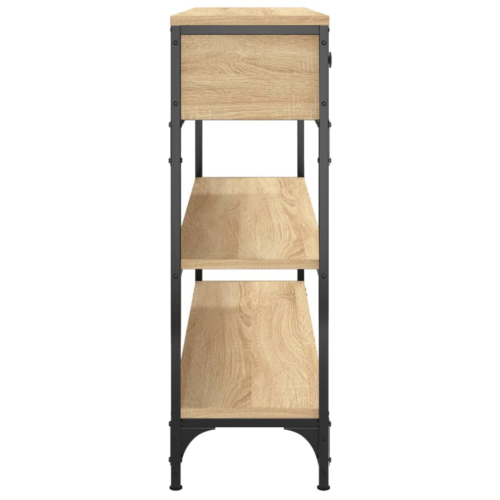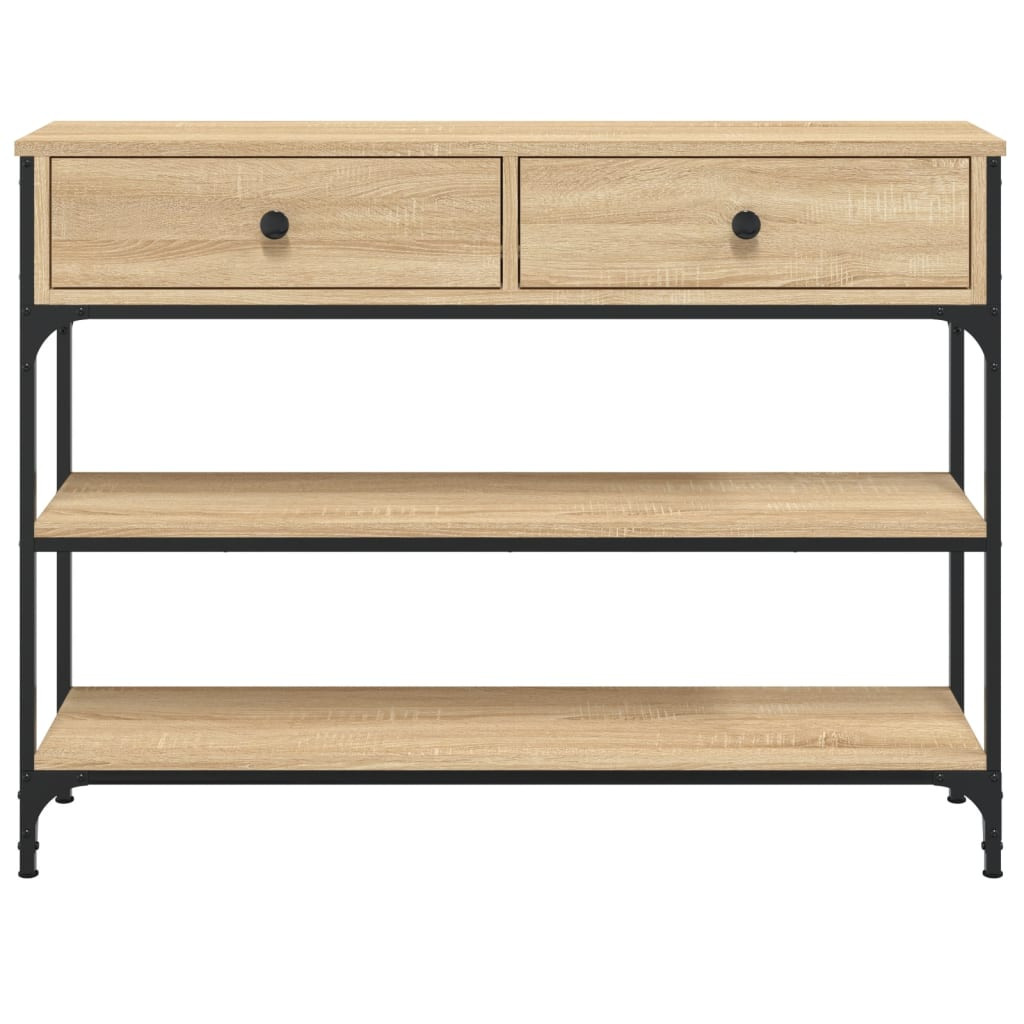 Adjon egy csipetnyi eleganciát bejáratához, nappalijához vagy folyosójához ezzel a stílusos konzolasztallal. Tartós anyag: A szerelt fa kivételes minőségű, sima felületű, szilárd, stabil, és ellenáll a nedvességnek. A szerelt fából készült kanapéasztal könnyen tisztítható.Bőséges tárolóhely: Az előszoba asztal bőséges tárhelyet kínál folyóiratai, könyvei, dísztárgyai és egyéb fontos tárgyai rendezett és elérhető helyen tartásához.Állítható láb: A négy, műanyag talppal ellátott láb egyensúlyban tartja az előszoba asztalt az egyenetlen talajon, valamint fokozza a stabilitást.Fémváz: A fémváz ipari stílust csempész otthonába, és az erőről, a stabilitásról is gondoskodnak. Figyelem:A felborulás elkerülése érdekében ezt a terméket a mellékelt fali rögzítőeszközzel kell használni.