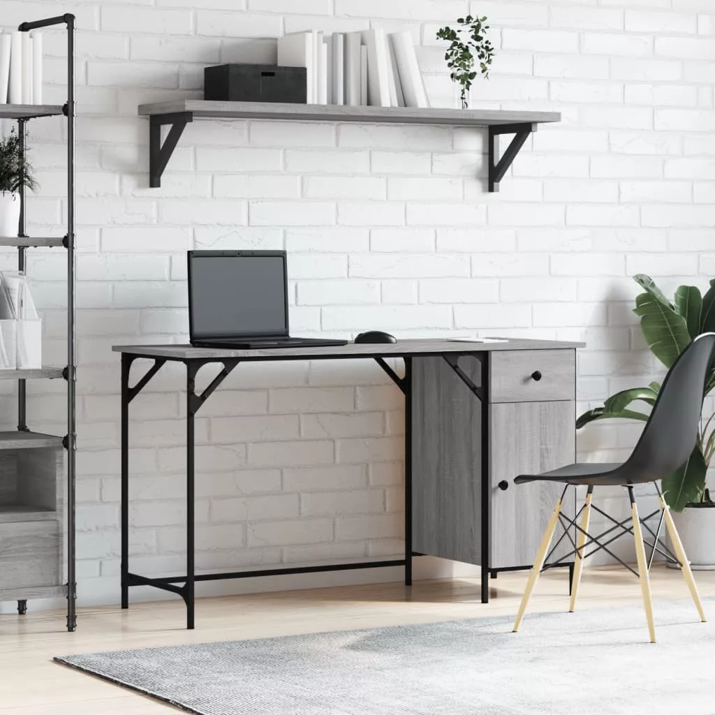 szürke sonoma szerelt fa számítógépasztal 131 x 48 x 75 cm