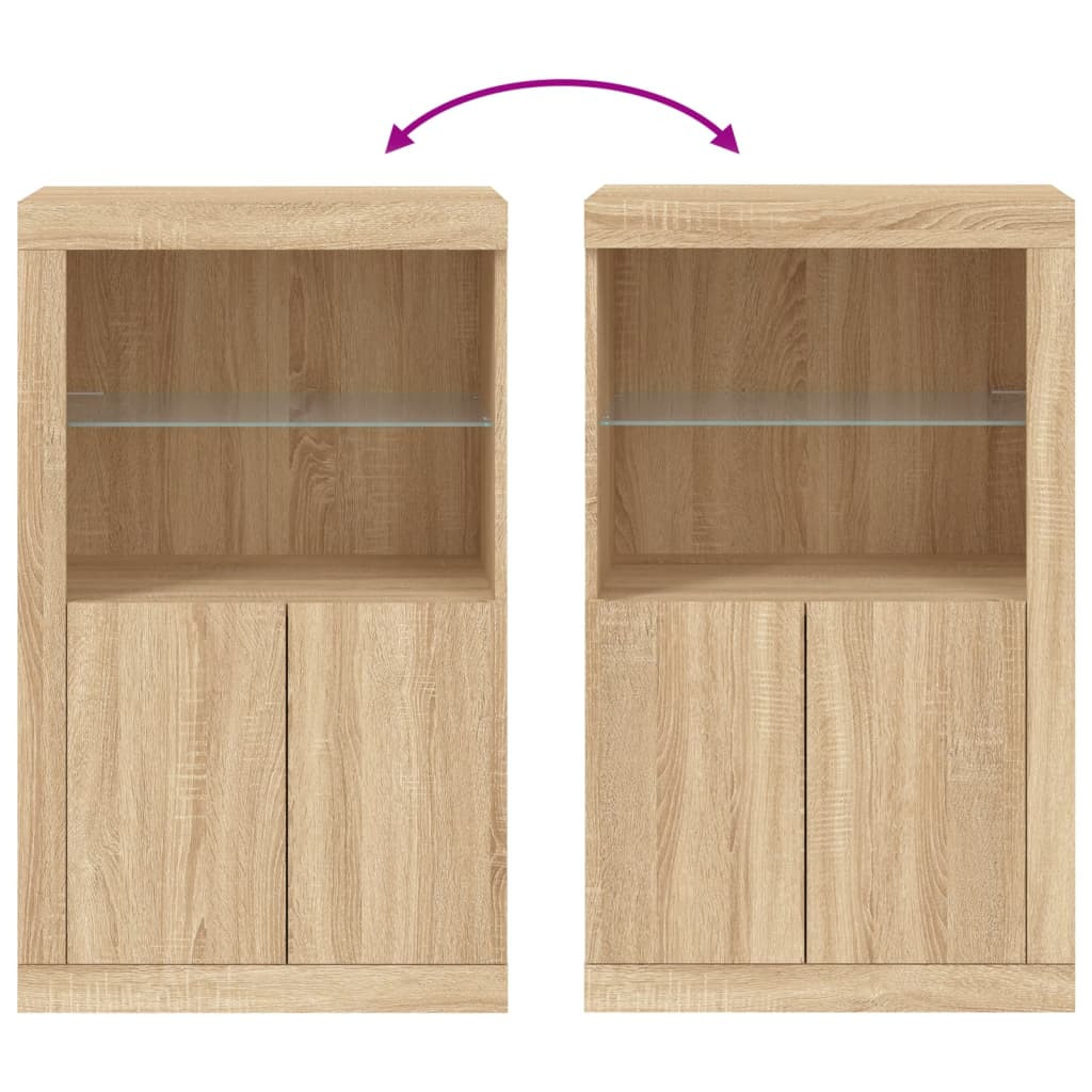 sonoma tölgy színű szerelt fa tálalószekrény LED-világítással