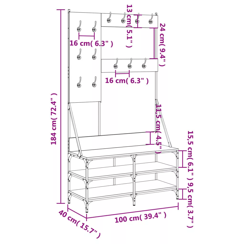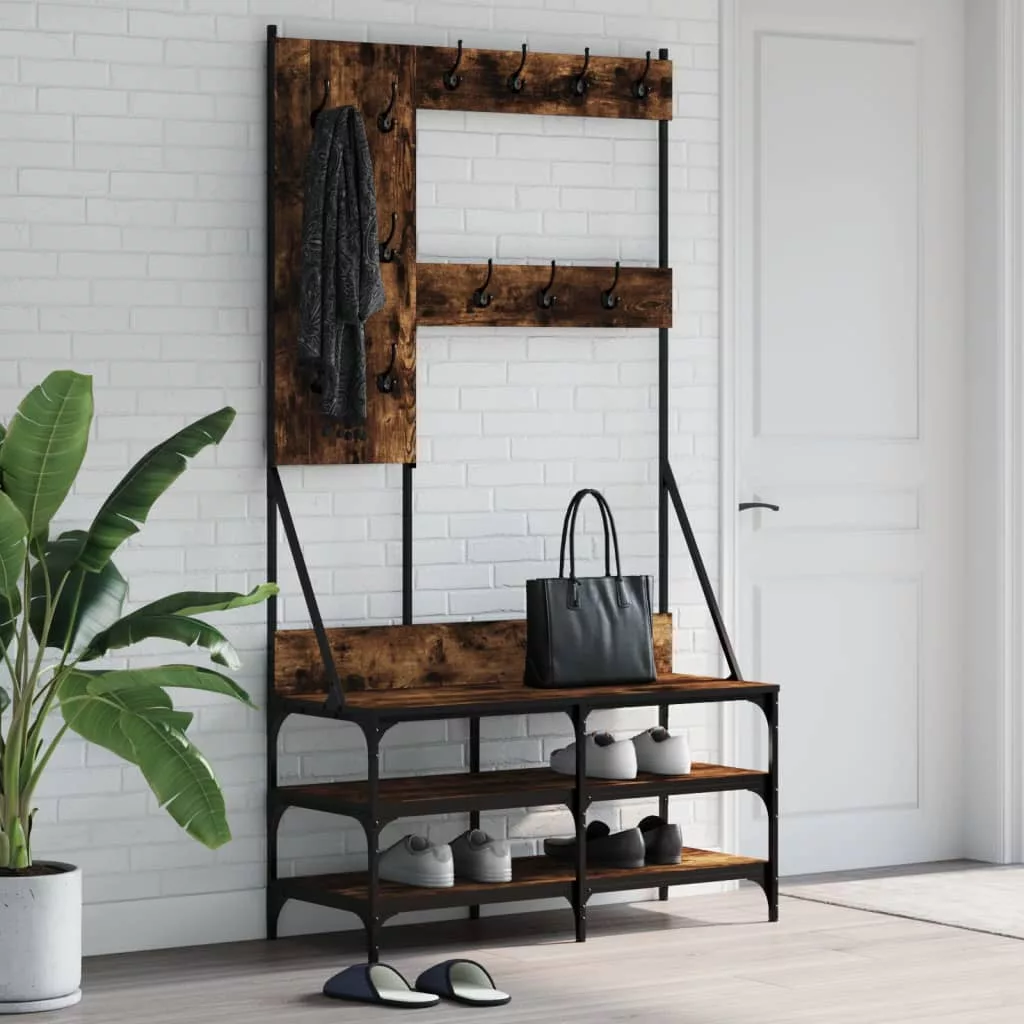 füstös tölgy színű ruhafogas cipőpolccal 100x40x184 cm