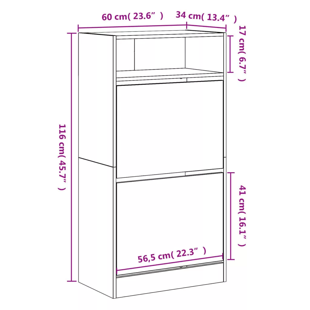 füstös tölgy színű szerelt fa cipőszekrény 60x34x116 cm