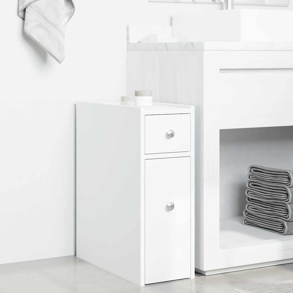 fehér szerelt fa keskeny fürdőszobaszekrény kerekekkel